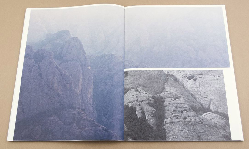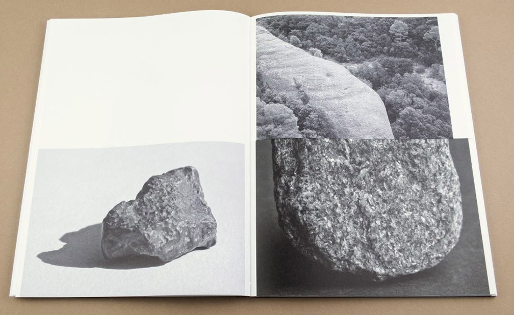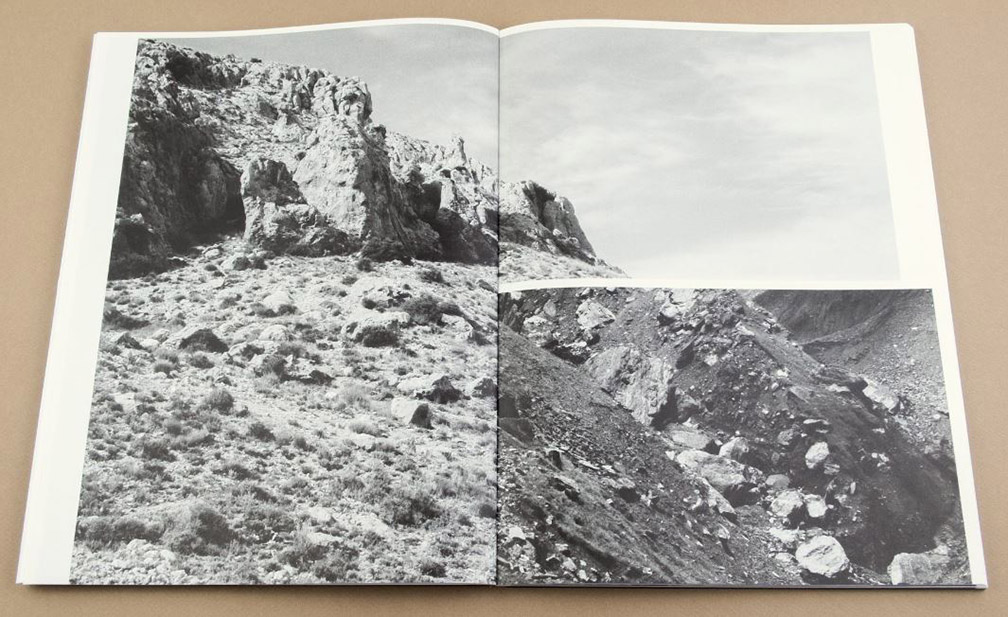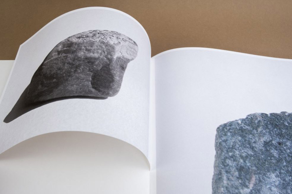 The images display a pleasant and surprising variety of shapes and sizes as well. The texture of the paper they are printed on varies throughout the photobook: some are on stock that is a nod in the direction of the rough nature of the stones depicted, while others are printed on paper with a semi-glossy surface. Monochrome images predominate, with warm or cold tones added where it enhances the effect of the depicted stonescapes. Occasionally there is a splash of color, for instance, to show emerging or existing vegetation. As shown in the sample pages below, another positive feature are the interspersed half pages that contribute to the tactile involvement of the viewer. The design and presentation dovetail beautifully with the subject.
