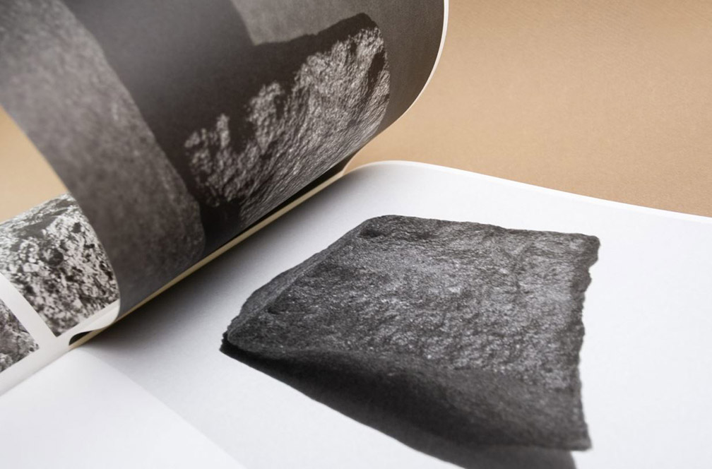 This is a book that communicates with the user not only through the visuals, but also by eliciting the viewer’s additional participation. The lifting of sheets, peeking what is behind them, and around them, causes a participatory stance to evolve: there are no essays in this book, only stones, rocks, and mountains for your visual and tactile journey. The absence of essays and other texts causes the viewer to confront and sort out the visuals on his or her own, without explanations or analyses by others. Makes you rethink your relationship to the earth a bit … a highly recommended assignment.