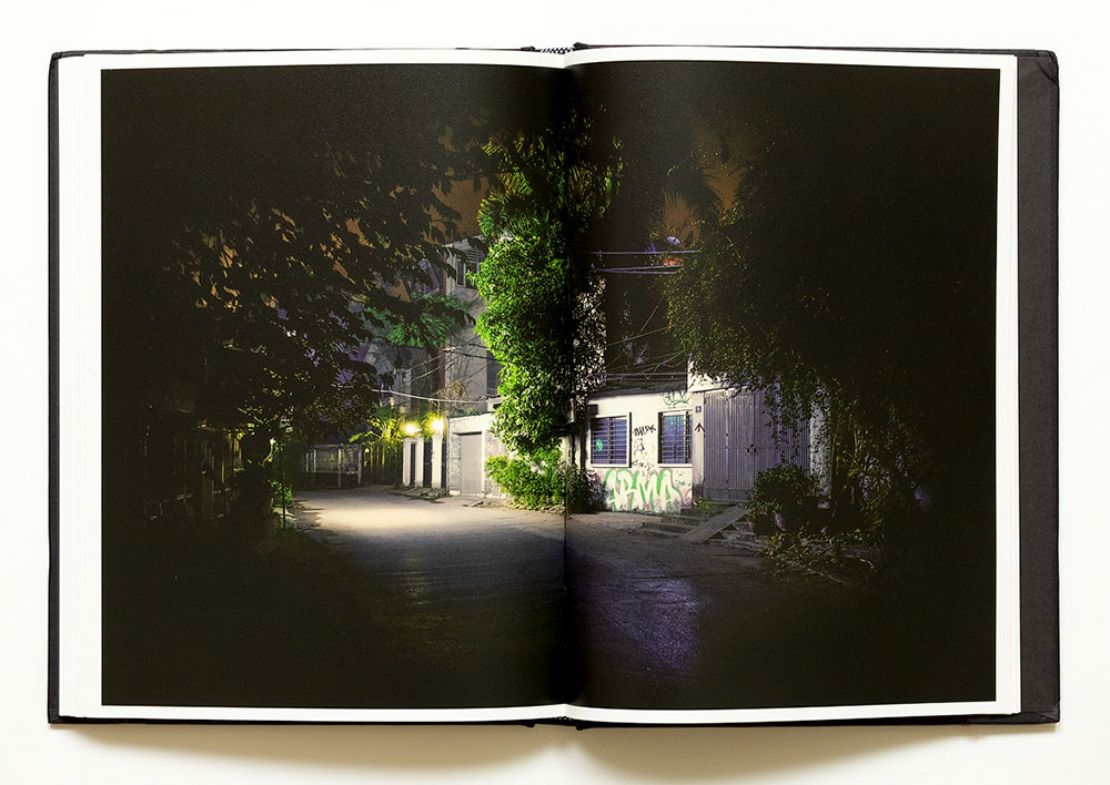 Wouter Vanhees was born and grew up in Belgium, moving to Hanoi in 2015. To explore his new city, he would set off at “10:43 p.m.” on Wednesday nights with his scooter, searching for interesting scenes. Vanhees says in his introductory essay that he searched for “lights, shadows, and colors that take me by surprise.” The 64 color images in this book are the result of these late-night wanderings.