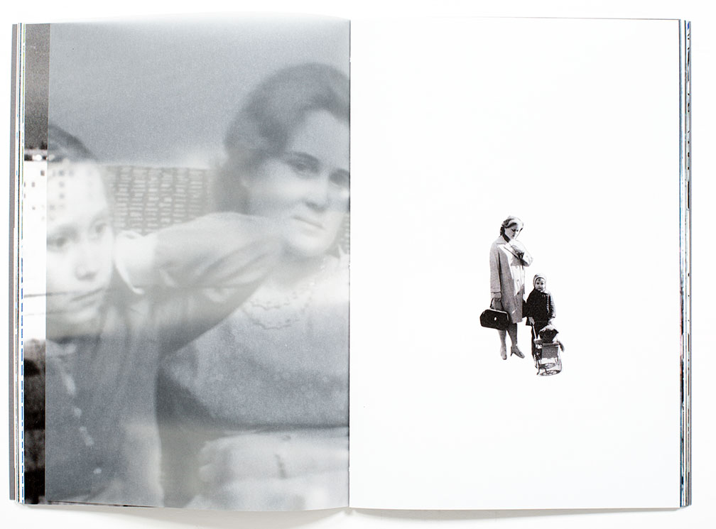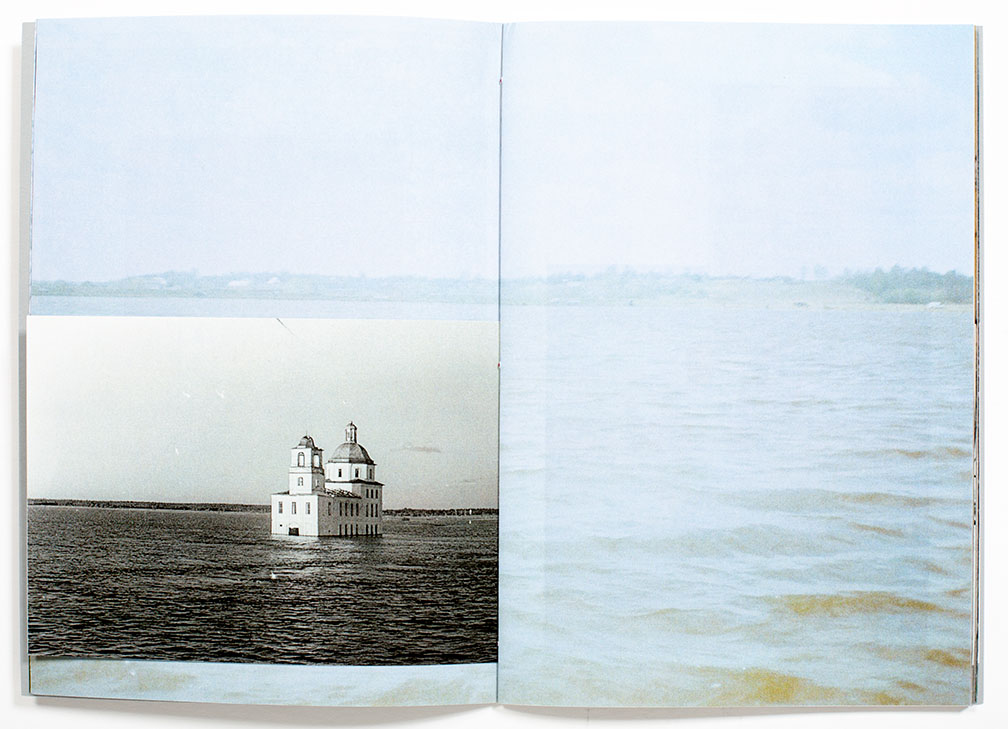 As stated earlier, The Further Shore (Zine Collection No. 2), is the singular artist book of Borissova’s that I do not have to make a comparison with. She does incorporate a printed half-page, similar in design as to her introductions for each zine, that functions as alternative reading of the page it is layered on as a novel book design element. She investigates an event in the 1930’s when the Volga River was altered to create a hydro-system but in the process obligated countless cities, villages and towns. She weaves found photographs with those of her own to investigate this site. During the flooding, rumors are that individuals were choosing to stay and not leave, perishing in their homes, and her question as to why people would make this choice?