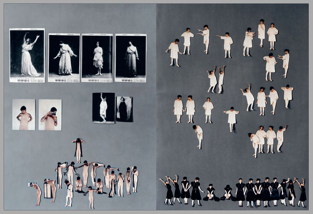 The reenactment of dancer Isadora Duncan’s dance movements, shown in multifaceted collages