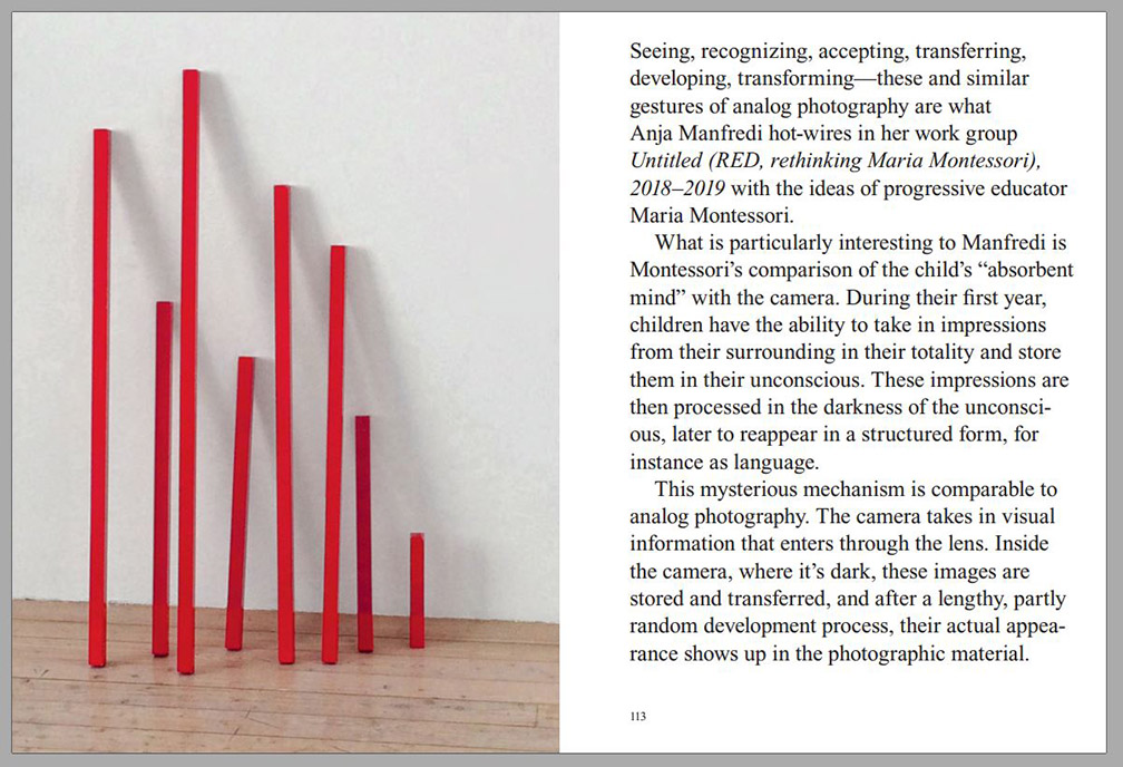 Anja Manfredi has been the director of the Friedl Kubelka School of Artistic Photography in Vienna since 2010. A glance at the school’s offerings indicates a multi-faceted approach that integrates theory and practice. This photobook presents a cross-section of philosophical questions and practical applications with which Anja Manfredi has concerned herself in her own professional practice, questions about the relationship between human gesture and image retention and re-emergence that have certainly also influenced her work at the school.