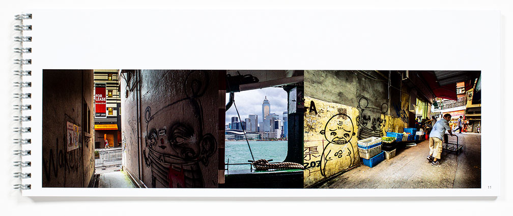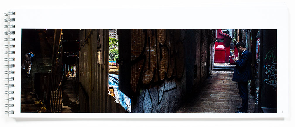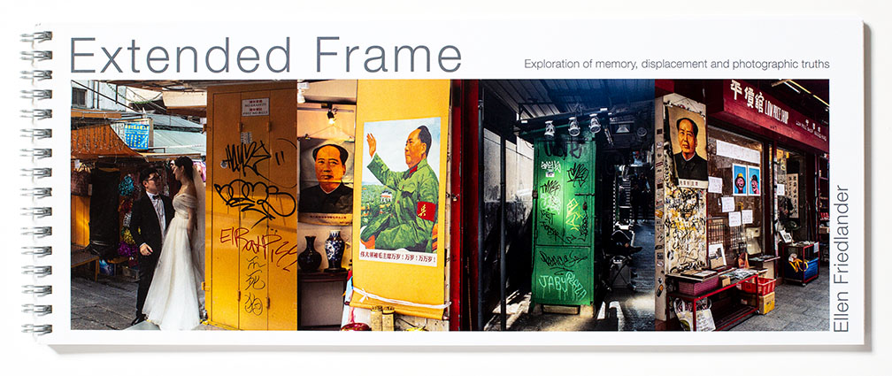 Her artist book, Extended Frame, is a collection of poetic urban stories, in that each of her extended frames functions as a self-sustaining mini-narrative. Her subjects appear very familiar until she subsequently places these into a new context, which results in a series of beguiling mysteries. The complexity of these juxtapositions causes the reader to pause and delve deep into the content to sort out the various possible meanings and attempt to understand the intent of each narratives.