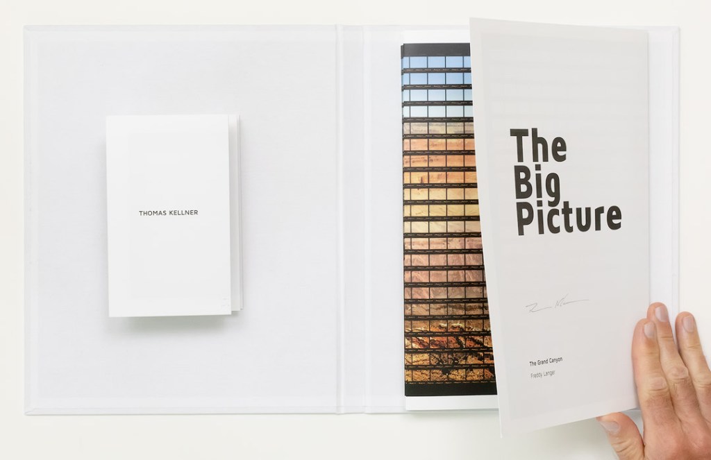 Imagine approaching the rim of the Grand Canyon on a bright sunny day, and watching the stunning natural scenery unfold in front of you. In Thomas Kellner’s new photo book, The Big Picture, you can expect a similar experience as you unfold his massive panorama of the Grand Canyon, made up of 2,160 individual 35mm film frames. It forms a large mosaic across eight concertina-folded pages, and it is a grand presentation indeed.