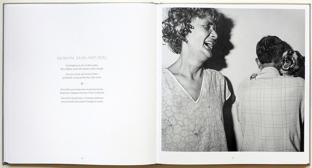 A total of 63 images from Ballen’s work between the years 1995 and 2017, a period of 23 years, are included. On the left, each double page presents the poetic texts written in response to the images, while the photographs are always on the right. There is an index of titles and years taken at the end of the book. The images are mostly in square format, as we are accustomed to from most of Ballen’s work. Occasionally we have horizontals or verticals, which add extra tension. As always, all the photographs are in black and white, so that we pay attention to figure, form, composition, and light and shadows, and we can supply our own emotional overtones to the images. They are beautifully printed on generously-sized pages.