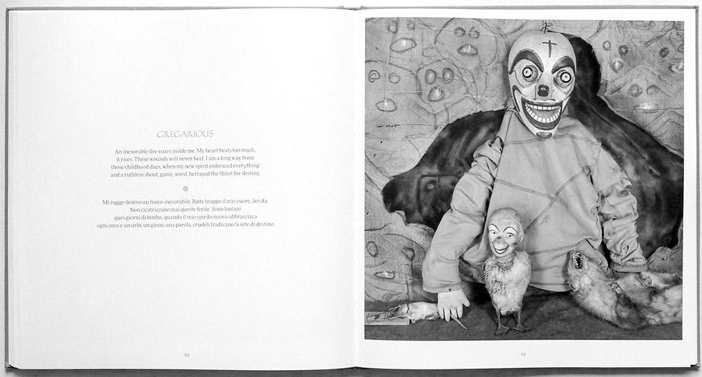 One person’s nightmare is another person’s reality. Sometimes the two realms are connected in mysterious ways. Roger Ballen is certainly the great master of showing us the seemingly absurd that impinges on the everyday, and here we have another, even more complex journey into Ballen’s universe. This time there is a notable added component: poetic writing in Italian and English by Gabriele Tinti. I have never seen as strong a connection between the visual and the verbal arts as is evident in this extraordinary book.