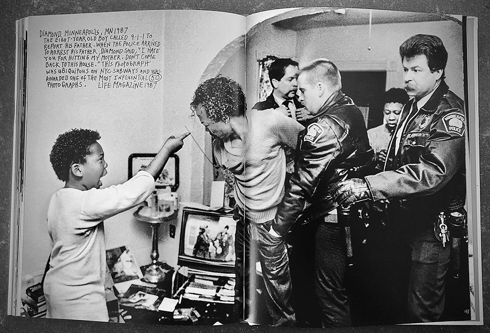 Many images in HOLY will be forever entrenched in your mind. The most chilling picture in my estimation is the one of the eight year old boy, Diamond, in Minneapolis, pointing his accusatory finger at his father as he is being led away by police. The quote attributed to Diamond: “I hate you for hitting my mother. Don’t come back to this house,” unquestionably amplifies the impact of this striking image.