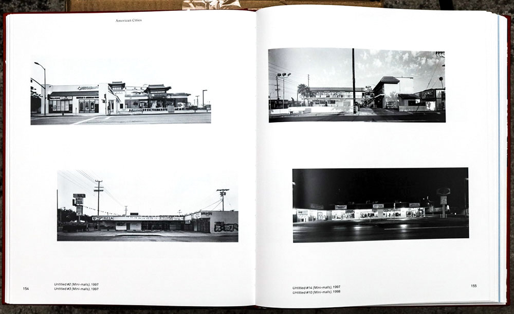Place visits Highschool Football Fields, American Cities, Houses, and 1999 among other projects, while reserving two noteworthy gatefolds. One for 700 Nimes Road displaying the contents of Elizabeth Taylor’s closet(s). The other, for a project titled Alaska. For 700 Nimes Road, page 148 sits across from page 153. The gatefold strategy asks readers to open the pages in the opposite direction to act out the big reveal, enabling a view of four images at the same time. Alaska takes the gatefold a step further, showcasing 9 photographs upon expanding. This works brilliantly at illustrating how the work appears during an exhibition. It also provides insight as to how Opie approached Alaska. Each shot photographed as a vertical (or in portrait orientation), knowing full well that as an installation the rendering would be a long panorama, tied together by the shoreline running through the nine frames. Similar strategies are applied during the making of Icehouses and Surfers.