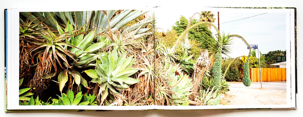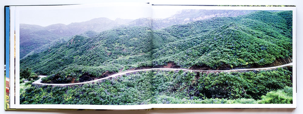 The result is Mulholland, a collection of 41 panoramic images that take us on a road trip from the mostly uninhabited west end to the increasingly developed east. “Cruising Mulholland, you take it all in, rugged mountains rising up form the sea, mansions perched on hilltops, giant succulents like saxophones, and the vast grid of the city spread out below,” Halverson writes.