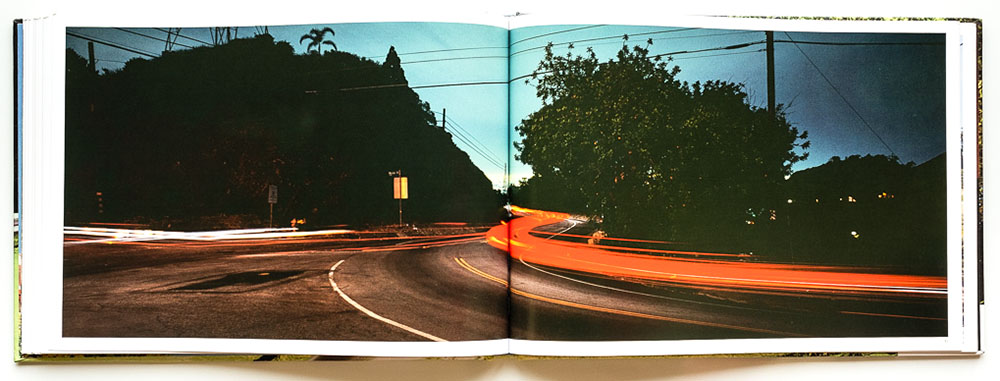 The images, taken with a Fuji 6 x 17 cm panoramic camera, are reproduced at a width of nearly 2 feet, filling each spread in the book. They deftly capture both the myth and the messy reality of the road. These are not picture postcard views. Rather, they are warts-and-all reflections of this urban wilderness.