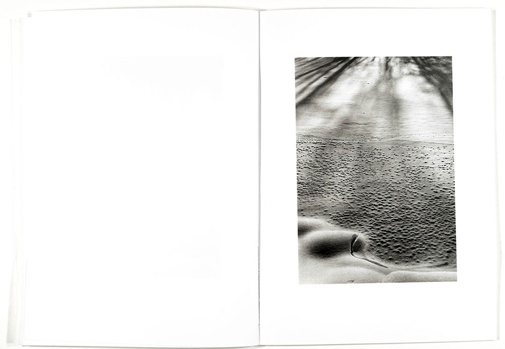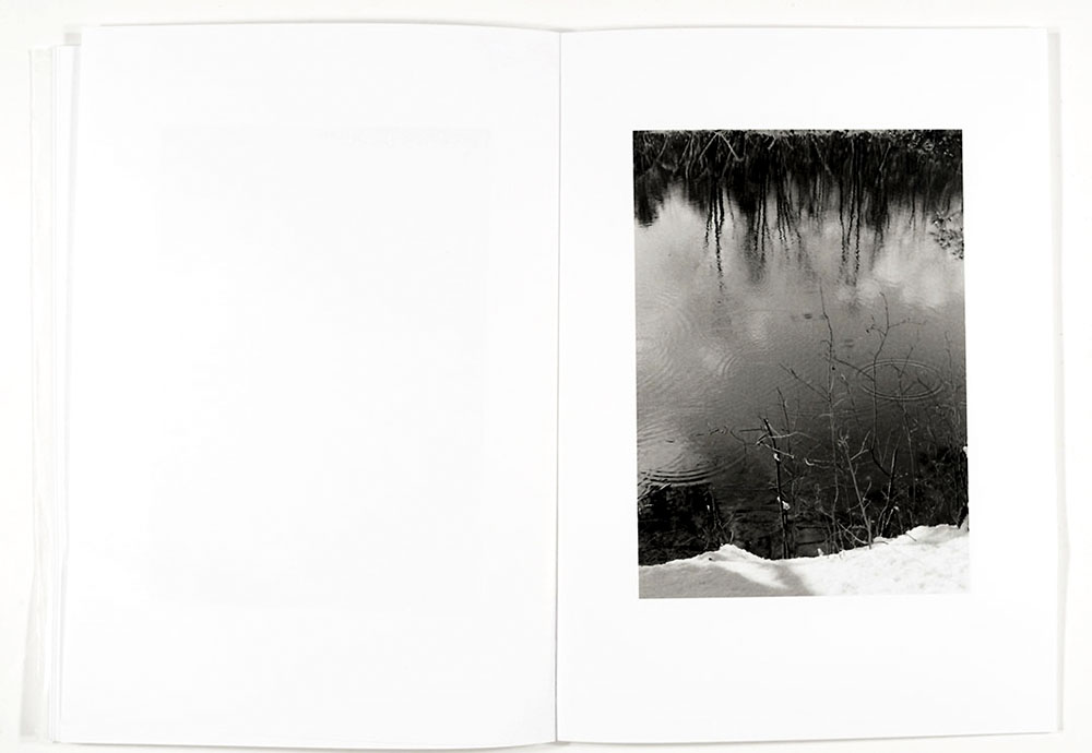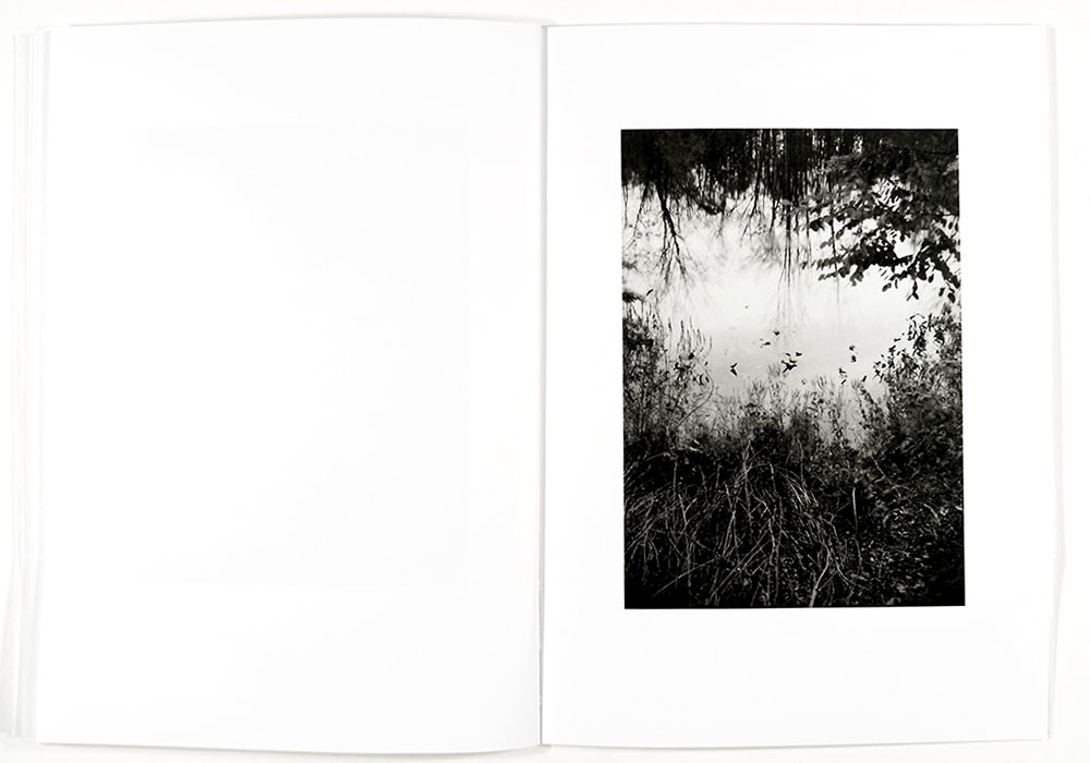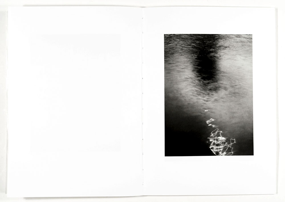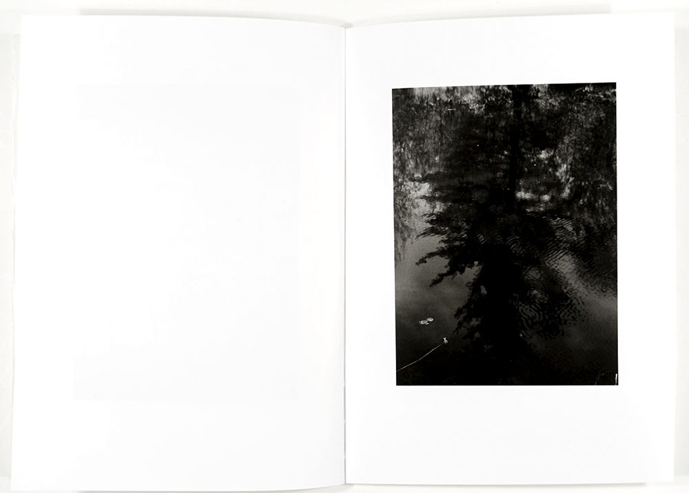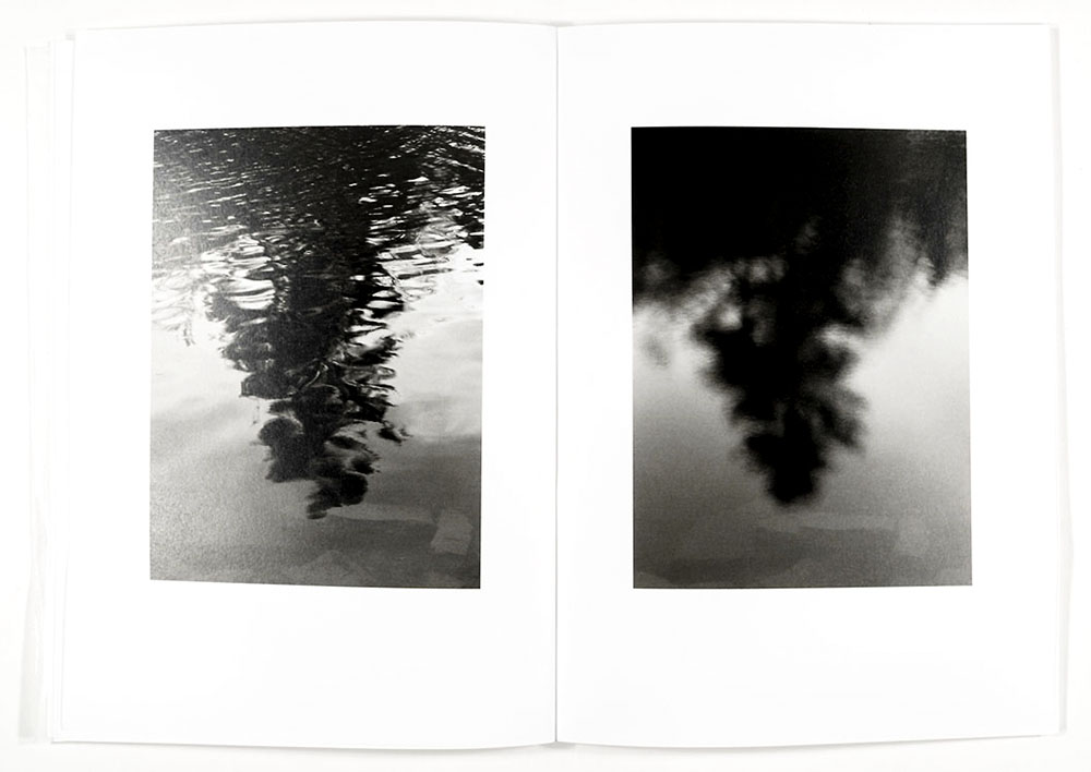 In a note at the end of the book, Green tells us that this work “began as meditations on nature: quiet observations of the water and what was reflected, refracted and shadowed upon its surface.” For a book that in itself is and is about delicacy, observation, quiet, the volume is appropriately slim, consisting of 24 photographs across 20 spreads. Most of the spreads feature a single photograph on the right page, left page blank, although there are three spreads with photographs on both pages.