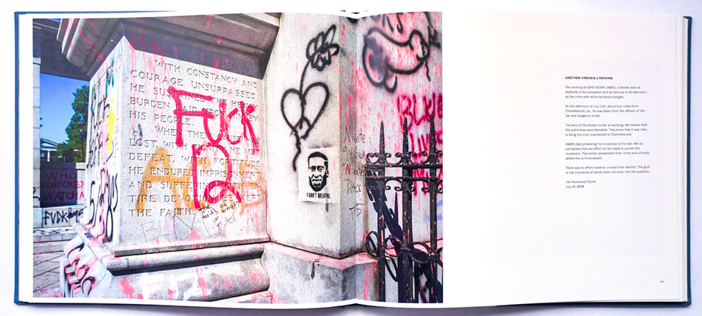 Known for his large format studies of lower Manhattan and Donald Trump’s negative impact on the once quaint Atlantic City, Rose responded to the 2020 death of George Floyd and the ensuing protests by packing up his gear in the pandemic afflicted summer and heading to back Richmond, to confront the legacy of his childhood home. There he documented the ways in which the righteously angry expressed centuries of pent-up rage by defacing massive bronze statues of those who profited from the slave trade. With language as colorful as the spray paint, Rose wisely includes detailed shots as well as wide angle vistas to help the viewer experience the degree of outrage felt about the death of not just one African American man, but the thousands who were also beaten and murdered in the name of racism and commerce.