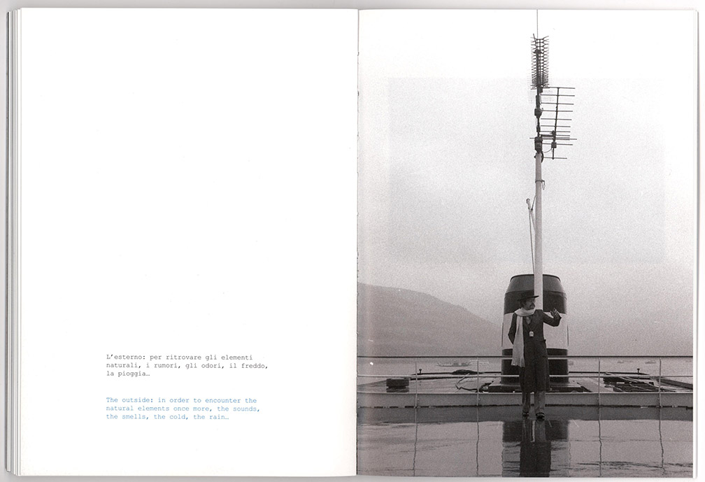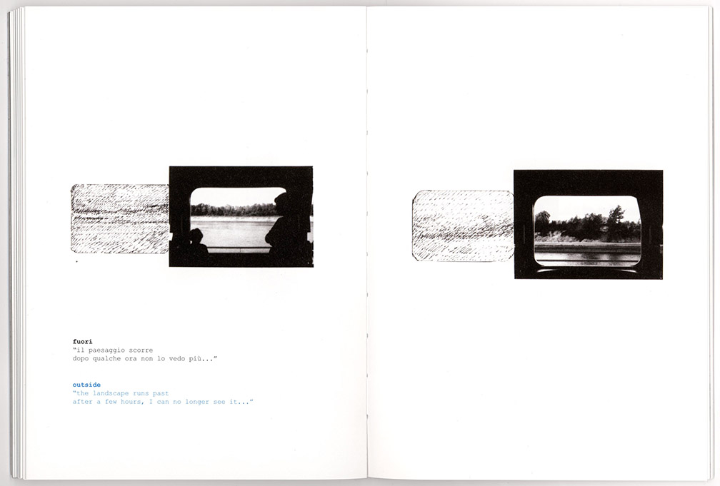 Stiff cover, open sewn binding; 80 pages, unpaginated; 16 x 22 cm / 6.25 x 8.75 inches; printed and bound in Italy by Fontegrafica, Cinesello Balsamo. Edition of 500. ISBN 9788894375978