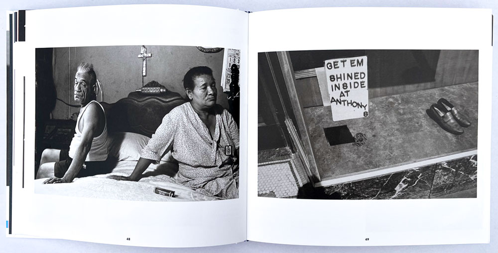 First Fifty devotes a spread (with additional photos between every other spread) to each of Friedlander’s first fifty books–Friedlander’s book publishing is so prodigious that informed readers could have a lively debate on which books are among the first fifty and which are not. In each spread you get the basic facts of the book along with the cover image and a few pictures from inside. You also get the dedication and these are special in the sense that they are all from books that Friedlander read or from song lyrics he favored. For example, the dedication to Factory Valleys is credited to “Gertrude Stein from ‘Scenery and George Washington’ or ‘A History of the United States of America’ and it reads: