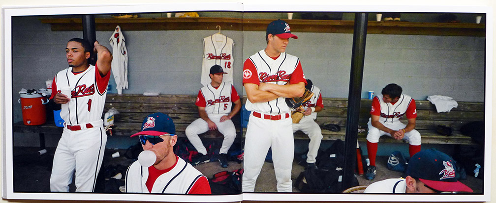 Michael von Graffenried here uses an unusual aspect ratio, measuring approximately 2.66 to 1, reminding us of cameras like the Widelux. This applies to all the images throughout the book, each of which is presented across a double-page spread. The effect is that the viewer feels an immediate presence and is as close to the goings-on as is possible in a book. Occasionally there are collages of four such “wide-screen” images, to show a greater variety of activities or contrasting groups. The majority of the images thus measure a generous 23 x 8.5 inches, or approximately 58 x 22 cm.