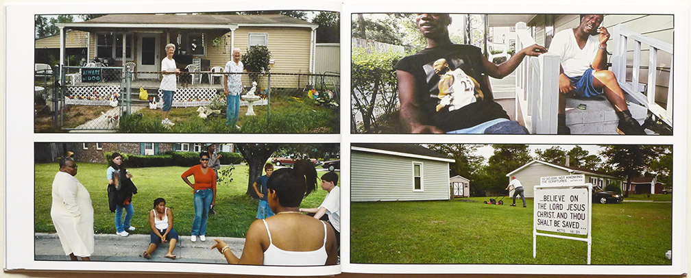 The cover of this photobook proclaims that the population of New Bern is “conspicuously composed of 55% white and 35% black citizens.” Perhaps in a tradition of separation into categories in the manner of census questions or even social and residential behavior patterns, this labeling can be understood, but a reduction to categorization by skin color seems like looking backward, not forward. Just how “white” or “black” are the skin tones of the individuals in this town (or any other); it seems to me there are many shades of skin color in between the two extremes of the spectrum. I would advocate just counting people per se, regardless of skin color.