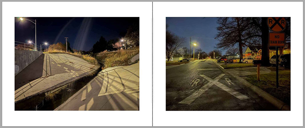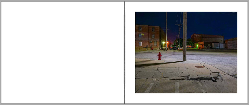 Roger Bruhn is certainly an astute observer who brings it all home. Here he presents us with a photobook full of colorful images that are completely devoid of people. This might have all kinds of implications – your imagination is the limit. So far, the United States has lost 700,000 fellow individuals due to the covid health disaster, and the world has lost millions of people. Do the empty places remind us of that? Mass shootings are another way of losing neighbors and friends. Do empty streets at night bring this to our consciousness, and even into our conscience?