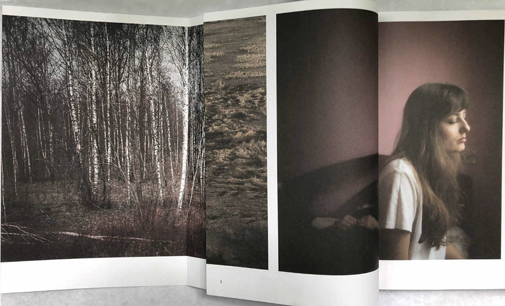 When you first pick up this photobook, it gets your attention with its unusual format. The images are printed on matte paper, and are presented as a physical continuity from cover to cover. It is like an accordion (leporello) that has been glued down on one side and has been given gatefold-like cover flaps on each end that enclose the sequence like a capsule: