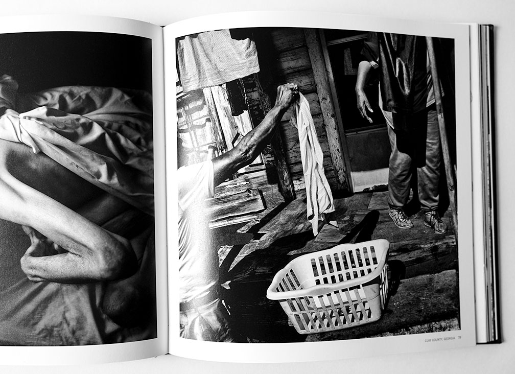 Black has a gift for seeing patterns, be they in the landscape itself, in the skies above, or in the more pernicious ways in which different towns and the lives of their inhabitants all start to seem interchangeable. A woman alone in Kentucky placed opposite that of a man’s silhouette in South Carolina makes perfect sense not only visually, but in context as well. For so many of those who live below the poverty line in this country, the similarities outweigh any geographical differences. Through Matt Black’s images, we walk in their boots, we feel parched on their barren land, we wish there was more money for the heating bill, we too sense that the power lines have been cut and the roads will always lead nowhere.