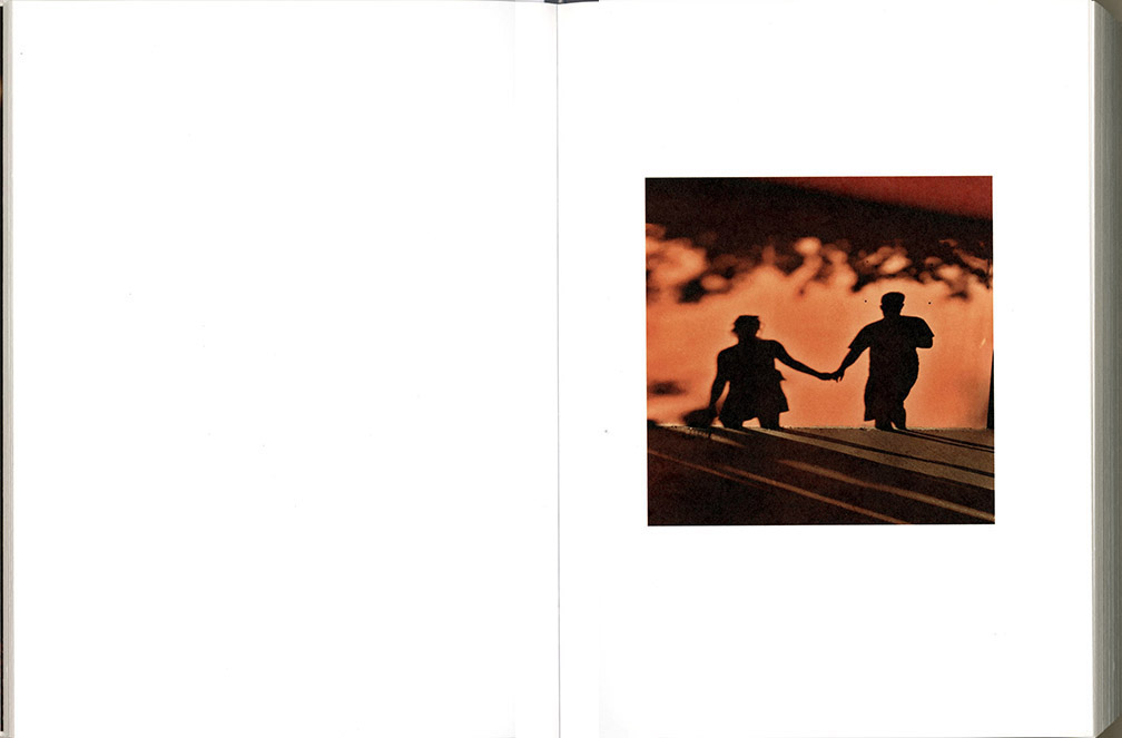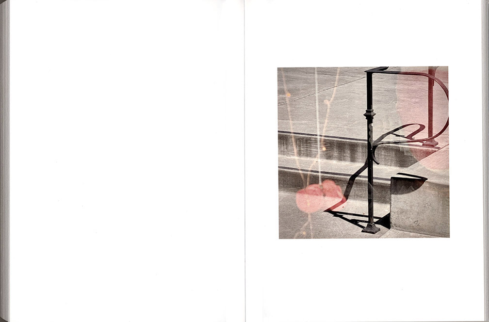 The words and images are generously spread apart, so that we don’t feel rushed, but also have many moments where our own eyes and minds can take time out to get in touch with ourselves and let our imagination come into play when facing blank pages. The photographs show a creative attention to detail and exquisite compositional talent; the few humans that appear (himself and others) are treated with a respectful distance and in a positive yet mysterious light, yet almost like shadows. It seems that warm colors increase as the book proceeds, which may point to an acceptance of perhaps inevitable circumstances. The self in relation to others is a universal preoccupation throughout our lives.