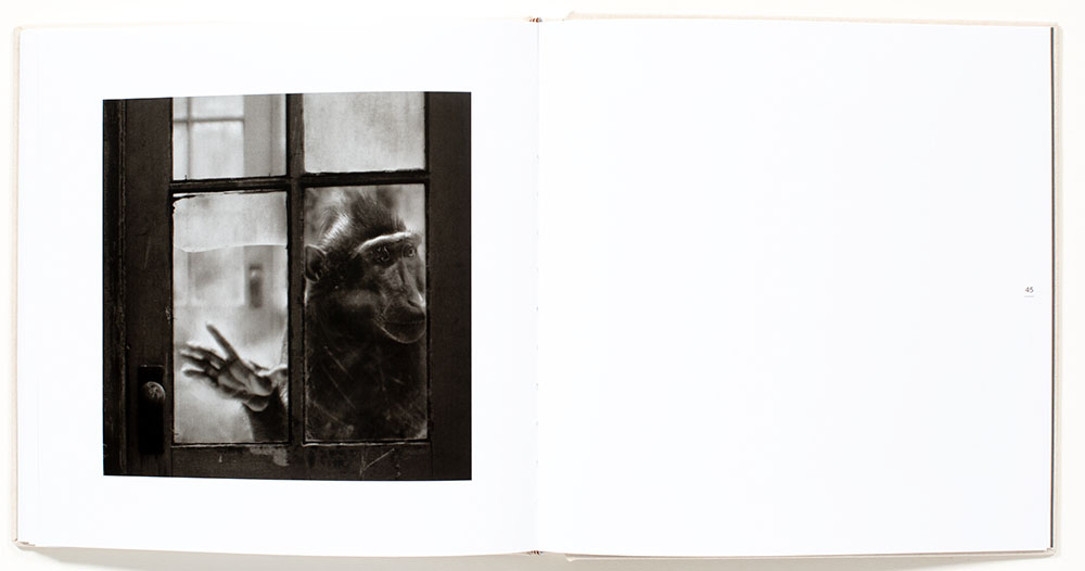Anthropomorphism, that is giving human traits or attributes to animals, is probably most applicable when observing primates, those animals we seem to attribute some of their attributes to us an interesting twist on zoomorphism. All the more when the subjects are observed in confined quarters in which we suspect they have spent the entirely of their lives. The facial expressions and physical positioning captured by Ann Berry over the duration of this project concurrent with the short time she spent confronting each of her subjects at the various small zoos throughout the world is illustrated in her photobook Behind Glass.