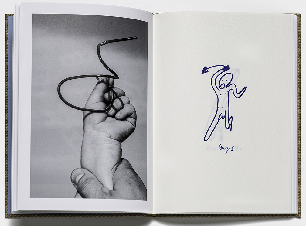 When asked about the process of creating the book, Puklus said: “The pictures express my personal feelings as a man in this stage of life. I constantly have the feeling that when I walk up a flight of stairs, I always have to skip several steps rather than go up one after the other. It’s crazy. I get from A to B, but don’t ask me how.” This honesty is impressive, and so is how it is rendered in his images. The book has a whimsical way of telling about spaces, things, children and parents, husband and wife. Two elements break the expectations for such a photobook: first, his mother portrait in the early part of the book. Second, this mother portrait is accompanied by drawings by the artist that bear titles such as “Anger” and “Depression”. The mother portrayed appears depressed, even severely mentally scarred. She smiles outwardly, but her soul seems dead. We know today that the depressive behavior of parents manifests itself primarily in withdrawal and silence, in order to give negative, strong feelings no room and space for expression. We also know today that the behavior of depressed parents is unconsciously passed on to their children. The children struggle throughout their lives against the onset of this illness or with the having received this illness.