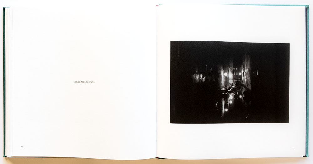 Cloth-covered hardcover book with tipped-in photo, sewn binding, trichome lithography, 12 x 12 inches, 96 pages, 50 images, printed in France