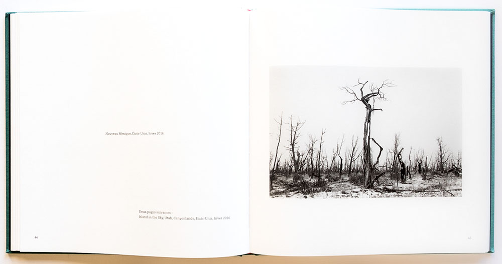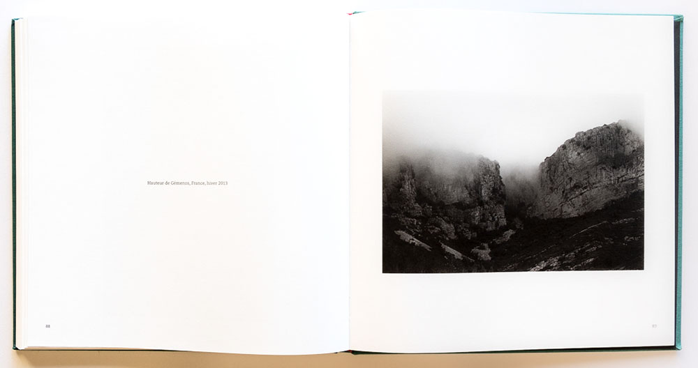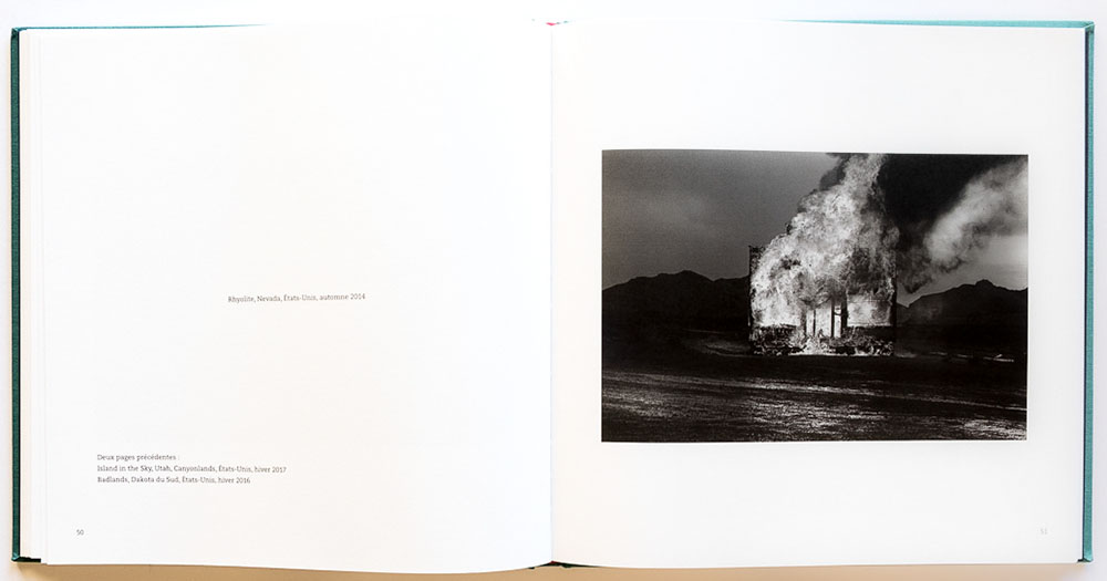 Cloth-covered hardcover book with tipped-in photo, sewn binding, trichome lithography, 12 x 12 inches, 96 pages, 50 images, printed in France