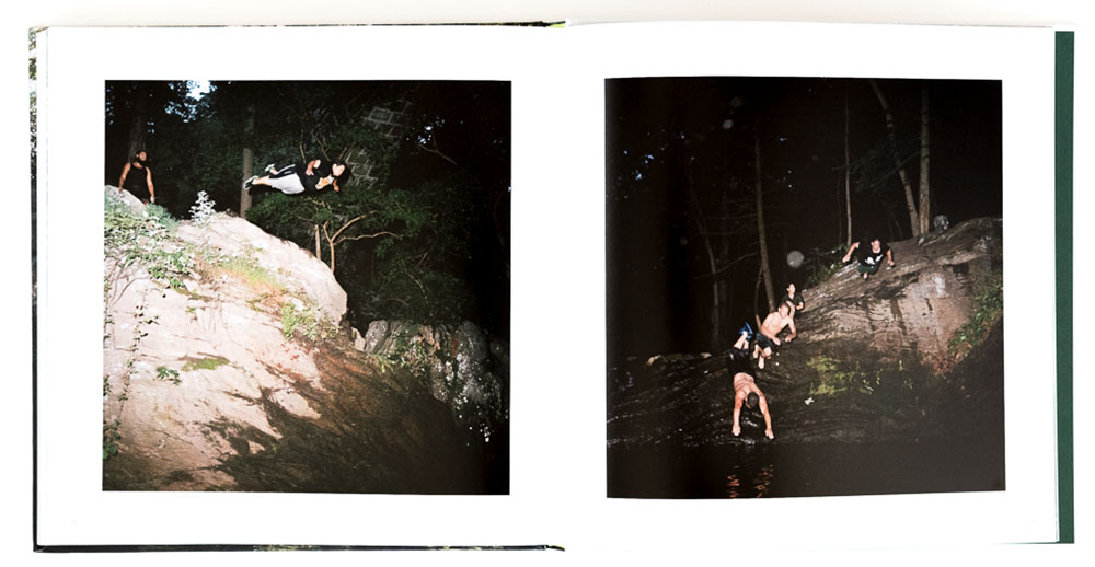 The book features portraits at close-range and of the environmental variety. Several images take time to visually digest – the eye takes in the green hues and running water, and then, in the distance a body can be seen struggling up some slimy rocks and out of the pool. The eerie, primordial undertones are palpable. And the use of variable exposures is also significant. On this front, Kaufman illustrates with a comparatively rare species of image – the daylight long-exposure (which are, quite amazingly, the result of handholding the camera in chest high water!). These exposures in particular emphasize the flow of life as people interact with the environment – friends look at once worried and excited as their compatriots take the plunge, aiming for the deep, dark spots in the pool. No need to “stop the action” at 1/250th of a second though.