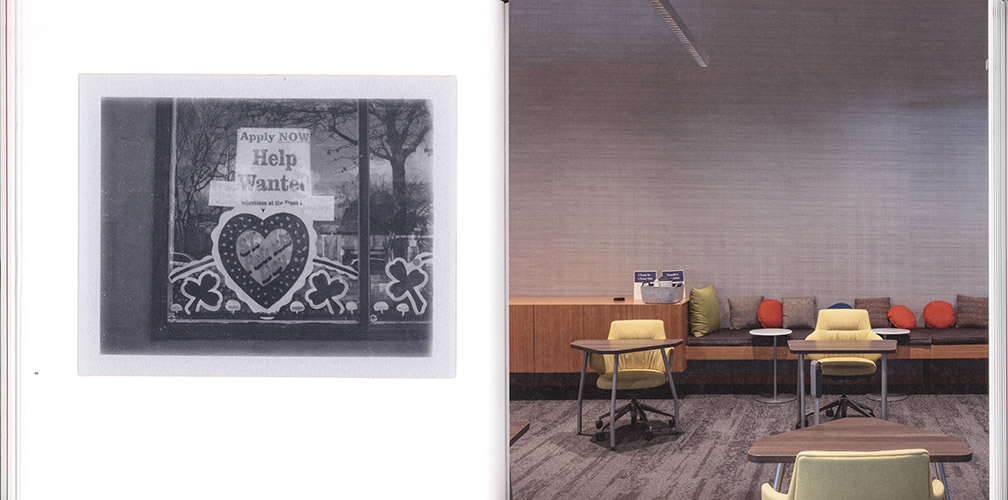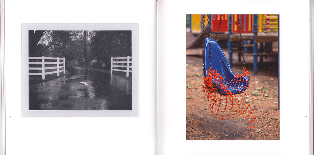In the foreword by René de Guzman we find a wording that applies to Crippens’ work very well; he is described as having “an ability to squeeze emotions from the still image,” while at the same time he is also providing many signs of hope. The main section of this photobook, sandwiched between a light and a dark blank, is full of observed moments characterized by an absence of people. The project successfully blends the monochrome images of desolation with more formally taken medium-format color photographs of our semi-abandoned environment, and thus expands our point of view. The places we are familiar with are already beckoning us – come on back, this can’t last forever! Some foldouts with diptychs and triptychs hint at the expandable horizons of a greater world opening up again (triptych shown in image 6 below). By blending his vision with two technologies, Crippens gives our situation a expansive, positive slant.
