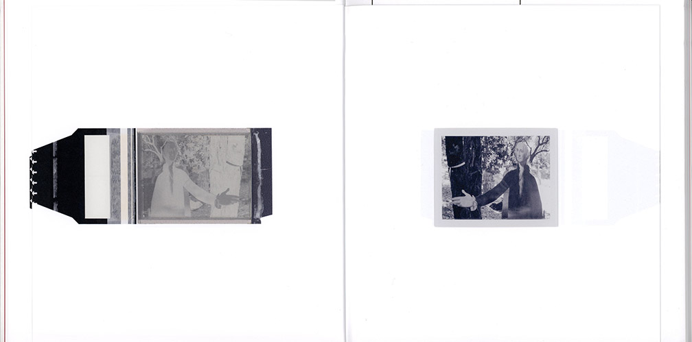 The project is presented in two parts. The opening section shows his observations as recorded on special Polaroid material stored for a decade, with each of the negatives (as separated from the positives) displayed on the left side of the double page, and the corresponding positive print on the right side. To compare each diptych is in itself instructive, since, as you know, the negative is exactly the opposite of the positive, so light and dark are twins. Are we seeing two sides of some of the issues here? Has sequestering intensified opposing opinions to the utmost extremes? How strange to see an oversized protective mask attached to a fence! Instead of a health issue, masks have become a political statement to some. And how interesting a discovery is it that that light-skinned people have dark skin on negatives? Would George Washington be amused about that dual depiction?