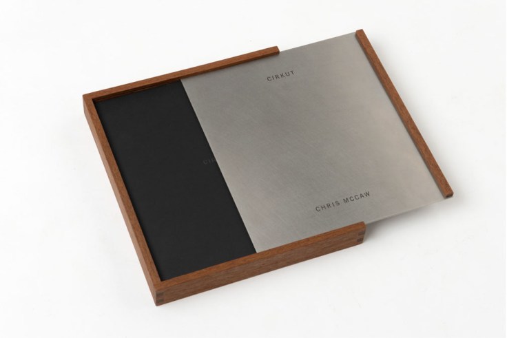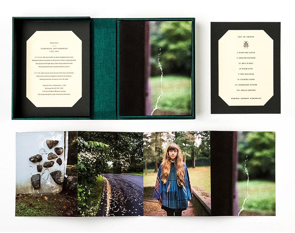 Datz Press is known for their deep collaboration with photographers, designers, and bookmakers. This can be felt in the details of this book. The double-sided accordion foldout of two sun rotations, the artist’s notes on the work, and an exposure test strip made from the same vintage photographic paper used in the original exposures, are all included in in a wooden box with a metal slide cover that operates like the slide in a large format film holder. Simple, pure, elegant.