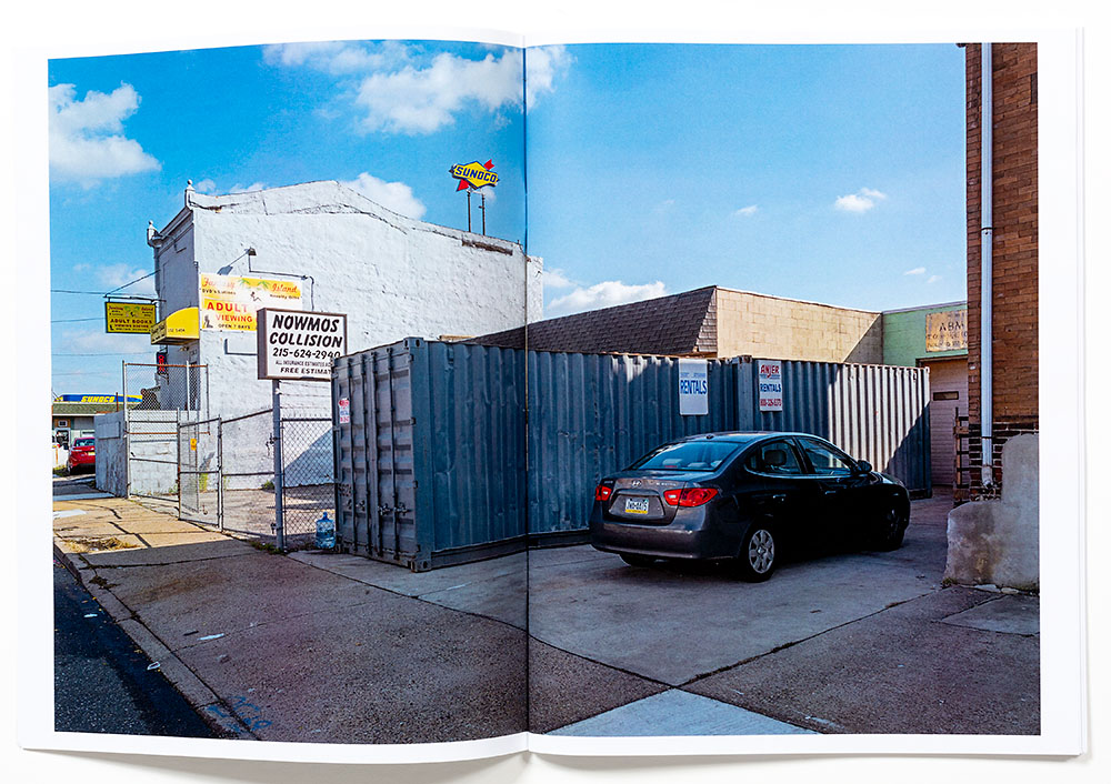 His photographs of this quasi-industrial region of Philadelphia appear like many industrial fringes of metropolitan centers that degrade over time from neglect and under investment. The neighborhood has a rough appearance that has probably seen better times. The economics of the area; rent, cost of labor, cost of land attracts business opportunities that benefit from low wages with tight margins that might be required for business like Four Seasons Total Landscaping to survive. We observe a used car lot, Melrose Motors, Home of Rick’s Hand Picked Cars, in which the majority of the cars for sale are damaged, not pristine and sparkling like-new. These are cars that are either very ‘economically’ priced, also known as ‘dirt cheap’, or available on financing terms for individuals with very questionable credit as this might be their only alternative.