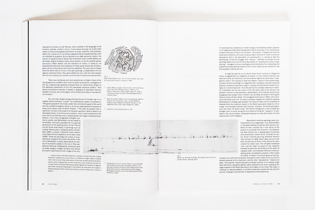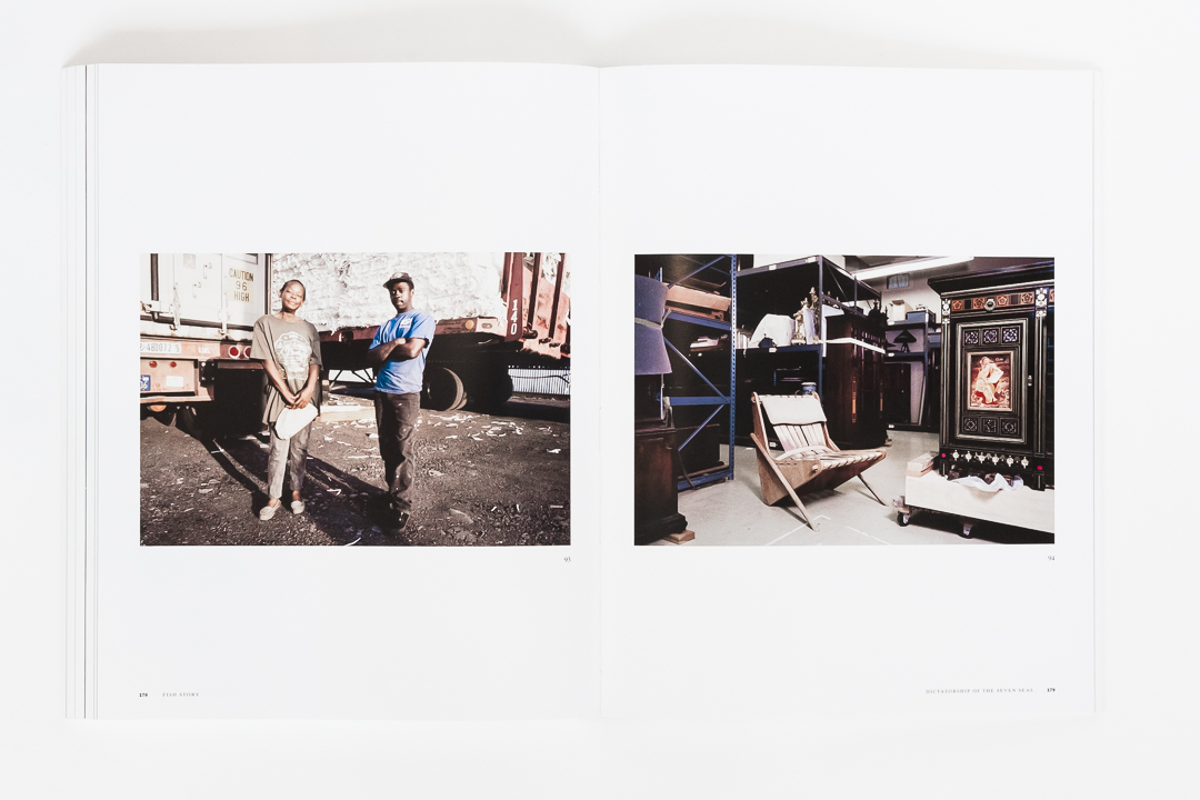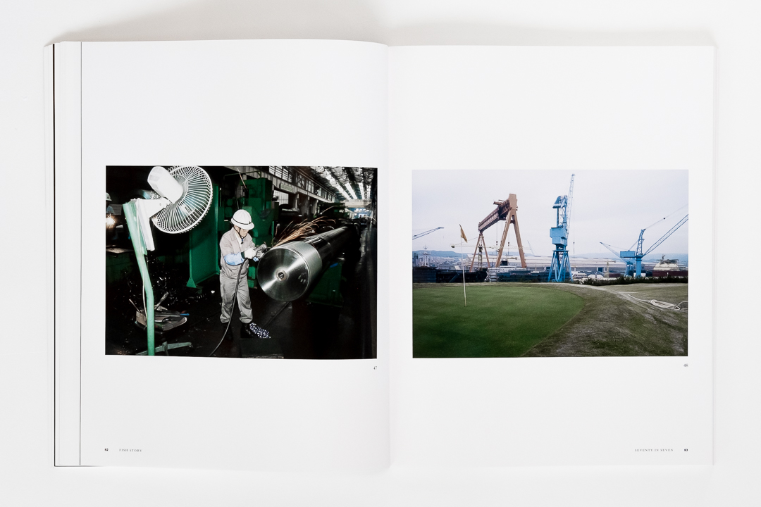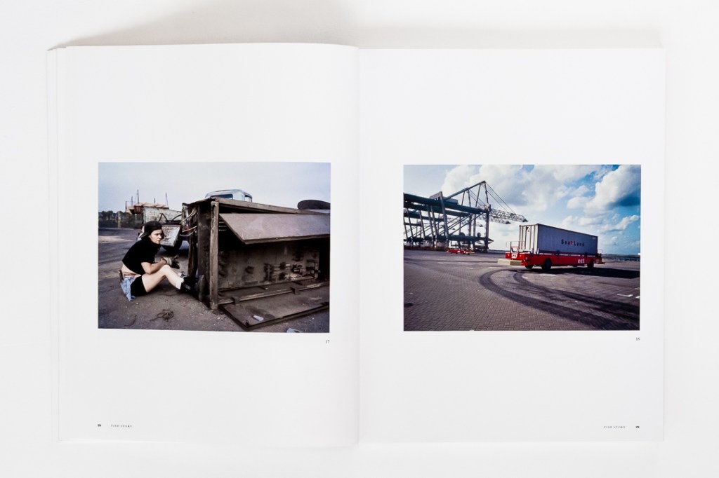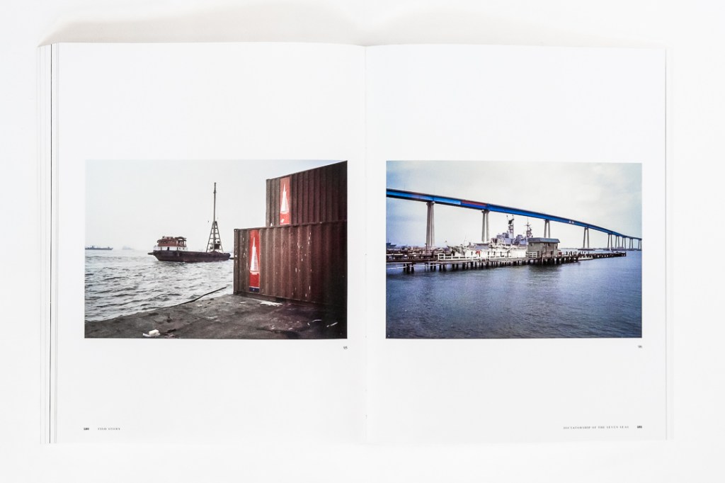 Clearly, this is not the type of project any ordinary photographer would undertake. And so, across 96 original photographs alongside and numerous textual, cartographic, cinematic, and other references and illustrations, Fish Story takes the reader to spaces that appear abstract, or more precisely, connected to abstract logics, like financial distance and commodity flows, by approaching them photographically in such a way as to reassert, i.e., to insist on their “new materiality.” Indeed, this book has a certain resonance today with the now well-worn phrase “supply-chain issues.”