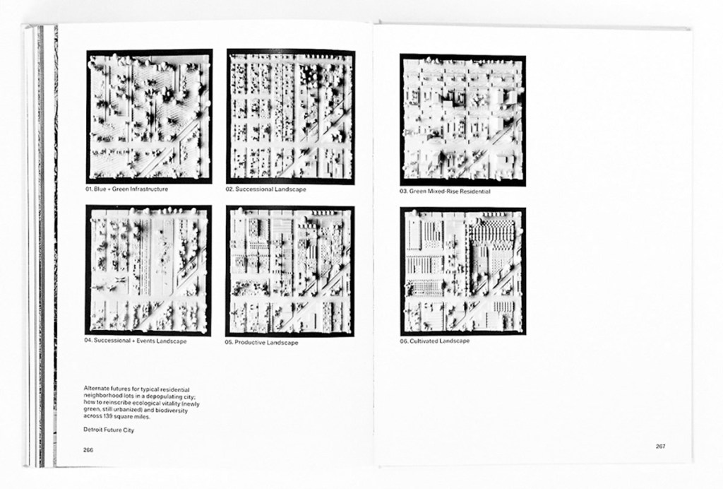 Mise-en-Scène is a handsomely designed book with tipped-in black and white images by Belleme on both the front and back covers cast within a green fabric cover and black stamped text. At 340 pages, including interior essays, which are very nicely laid in with alternate paper and size, by critic/curator Mimi Zeiger, artist-activist De Nichols, architecture scholar Julia Czerniak, ecologist/planner Nina Marie Lister and landscape designer Sara Zewede as well as statements by Reed and Belleme, the reader is treated to tremendous value for the money. Save for some color reproductions in Reed’s opening essay that mark out some inspiration and reference points, as well as various drafts of wireframe designs of the architecture featured within the book, the interior images of Belleme are presented in black and white with excellent attention to the tonality. It is a book that one keeps wanting to come back to, and is rewarded for doing so, as the wealth of material in the book register on both intellectual and aesthetic levels.