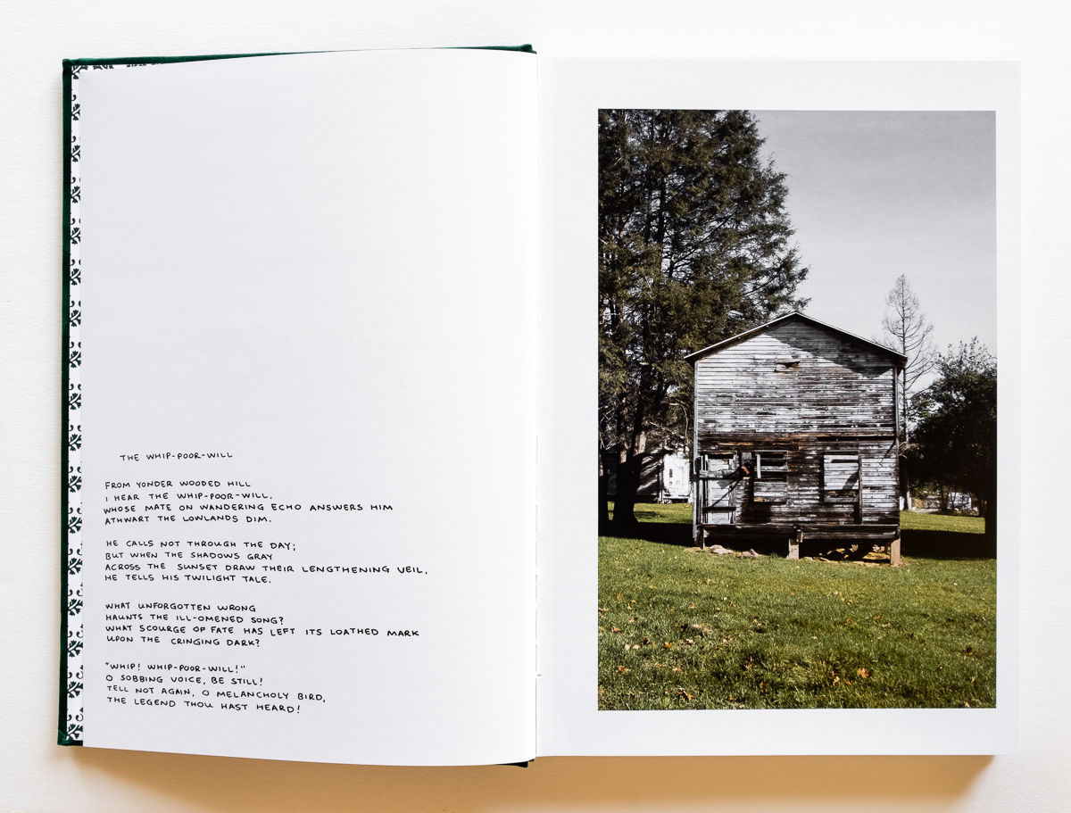 Setting the tone for the imagery that will follow, the book begins with a poem, “The Whip-Poor-Will,” echoing classic folk legends about the ominous presence of that “melancholy bird.” From there, Goodman presents a loose collection of imagery and text that paints a haunting picture of the people, places, events, and beliefs he encountered in the Patapsco River Valley of Maryland, and from his family’s ancestral history in West Virginia and North Carolina. “Growing up, I accepted this folklore as commonplace but came to understand with age that these stories were unique to a working class, Appalachian culture,” he notes.