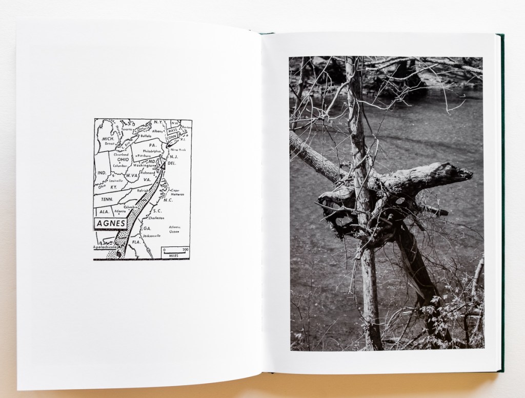 Drawing from his own photos, archival images, short passages of text and poetry, maps, newspaper clippings and other ephemera, he has created a multi-generational portrait of the region and its way of life, complete with ghosts, folk wisdom, and biblical floods.