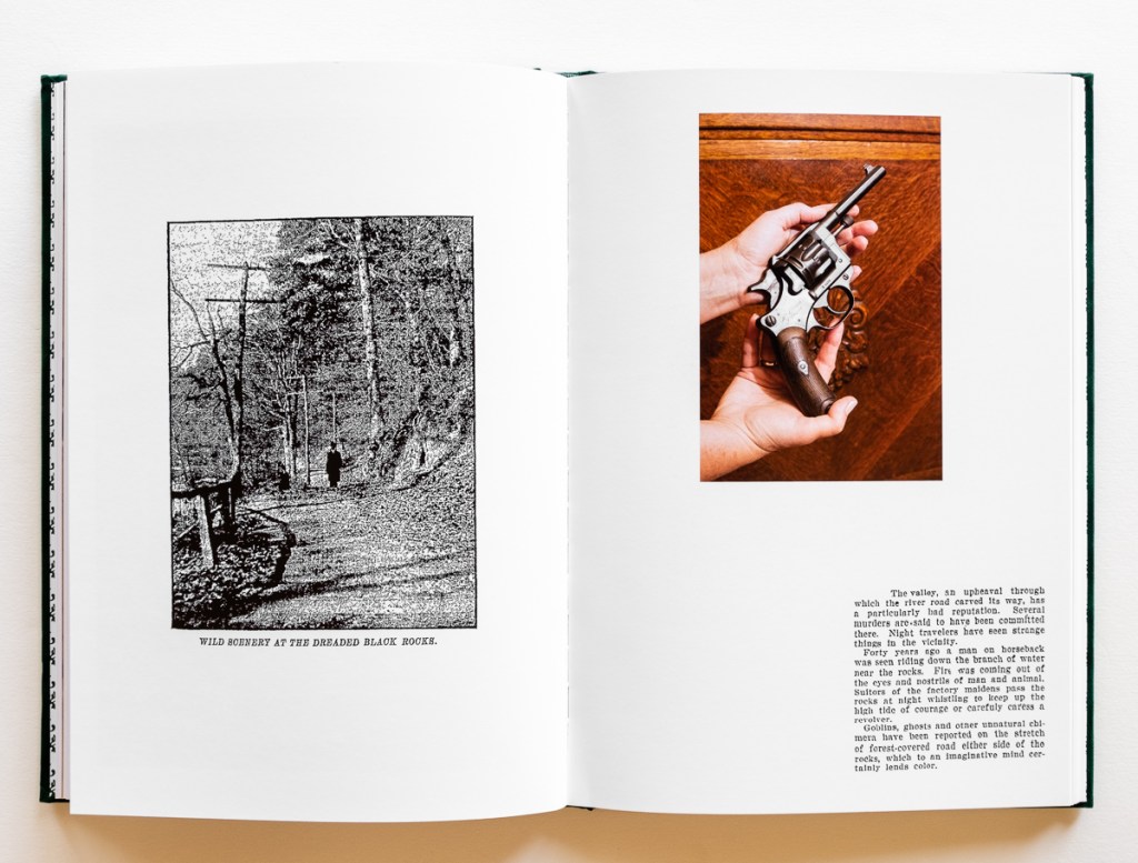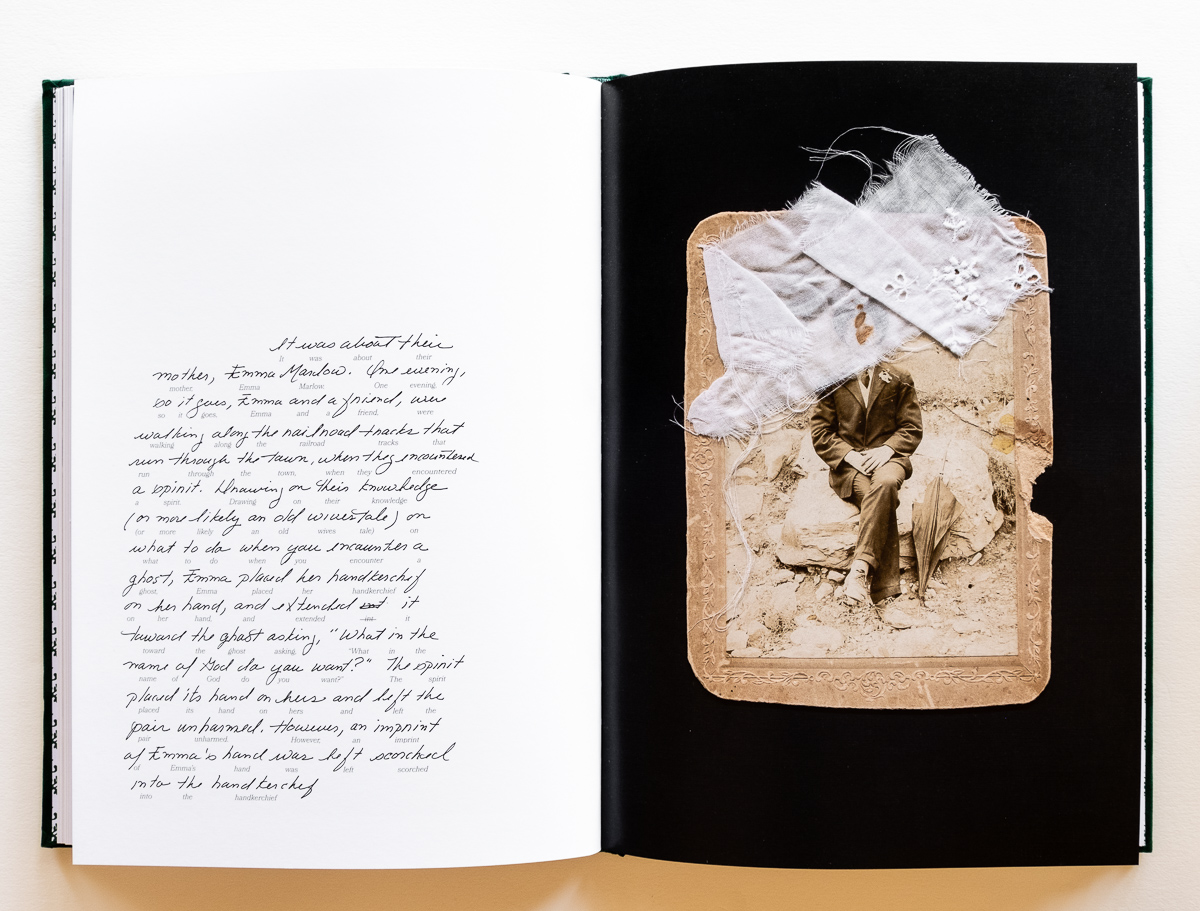 Old newspaper clippings, cursive text passages, and ephemera provide more details about daily life, everything from using sassafras to make tea to the proper etiquette when encountering a ghost. Throughout the book, past and present, fact and fiction are jumbled together as he explores “what we choose to remember versus what chooses to remember us.”