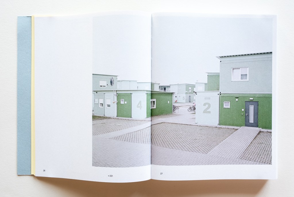 On the one hand, the architects and planners developed housing that is in many cases innovative and technically well-executed, providing a safe place for refugees to begin their journey toward assimilation in a new land. On the other hand, the buildings were purposely placed in greenfield areas on the edge of cities or in industrial areas, separated from existing communities. Additionally, sociologist Philipp Piechura writes in the book’s introductory essay that “refugees often have to spend years of their lives in these buildings. Thus, shelters, paradoxically, become both starting points and barriers on the way to a new life.”