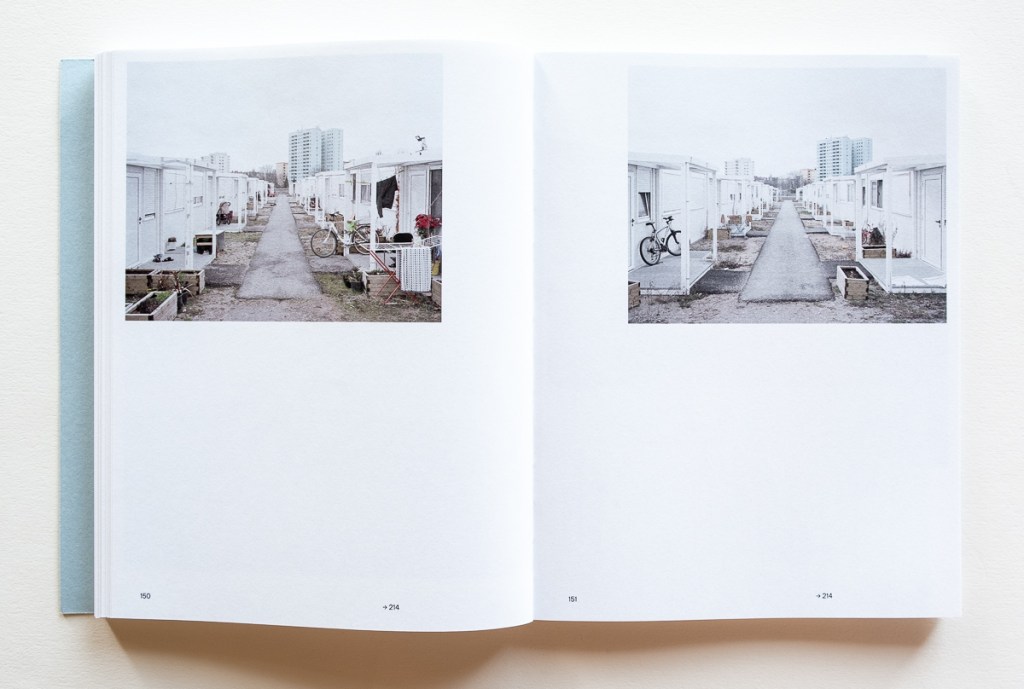 Uchtmann says “I chose not to show the refugees themselves in the images, but what is provided to them. In this way, I would like to try to focus the debate about the integration of refugees more on the role of those who host them and the responsibility that they also have, so that living together collectively is possible.” The result is that this important part of the message is left to the text and a few architectural drawings. These explain that the refugees for the most part live in shared spaces, with limited bathroom and kitchen facilities. In other words, these are not homes, but dormitories. By using only images with no people in sight, it’s hard to grasp how crowded living in these communities must feel. In addition, other than a few shots showing how the building complexes are distanced from the surrounding community, it’s difficult to fully grasp the consequences of their isolation.