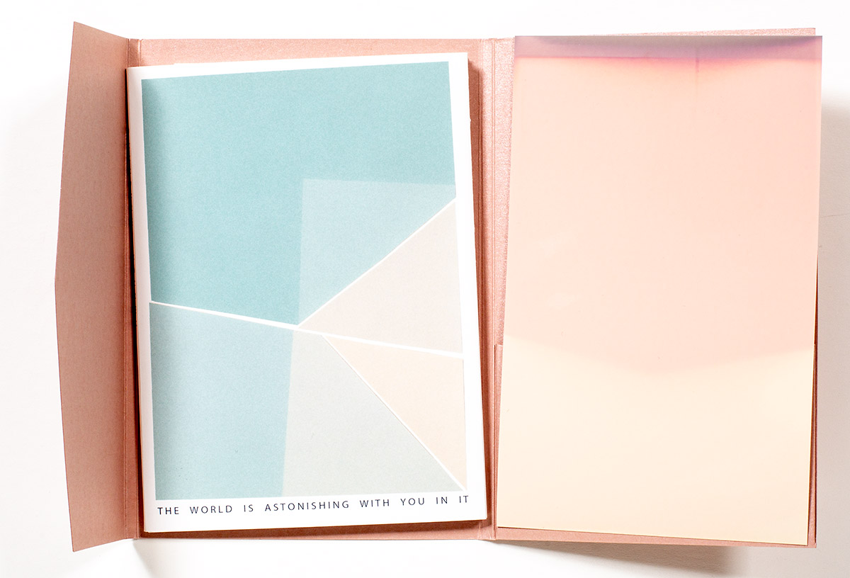 Stiffcovers with glued pocket, clear poly outer-case, litho printed and die-cut sheet printed by Datz Books, South Korea with an unfixed lumen print by Marchand, second printing.