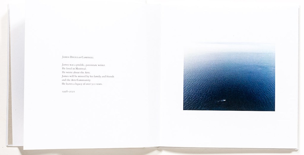 How does one elegize a dear friend? What might one write about a fellow writer? What could be the possible images that reflect that person’s life and their subsequent passing? This is the raison d’être for Ewa Monika Zebrowski’s artist book now & beyond dedicated to the passing of her friend, James Douglas Campbell.
