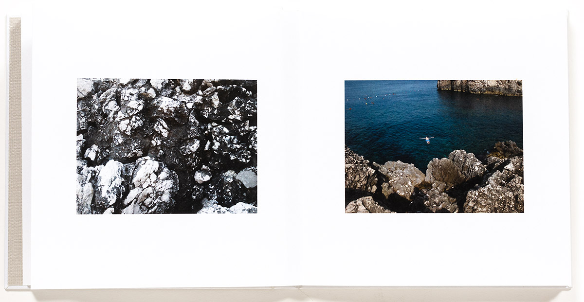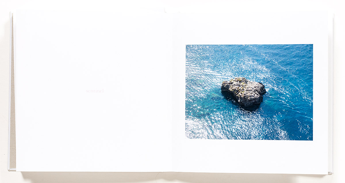 The accompanying equivalent photographs investigate liminal spaces, usually devoid of any individuals; an urban passage way, a walkway, the intersection of water and land, a lookout point or an expanse of sea. There is one photograph of an individual who appears suspended in a sea of blue, arms extended, in conjunction with a rocky foreground; a combination of peace and uneasiness, both states of mind that may momentarily coexist while dealing with current events.