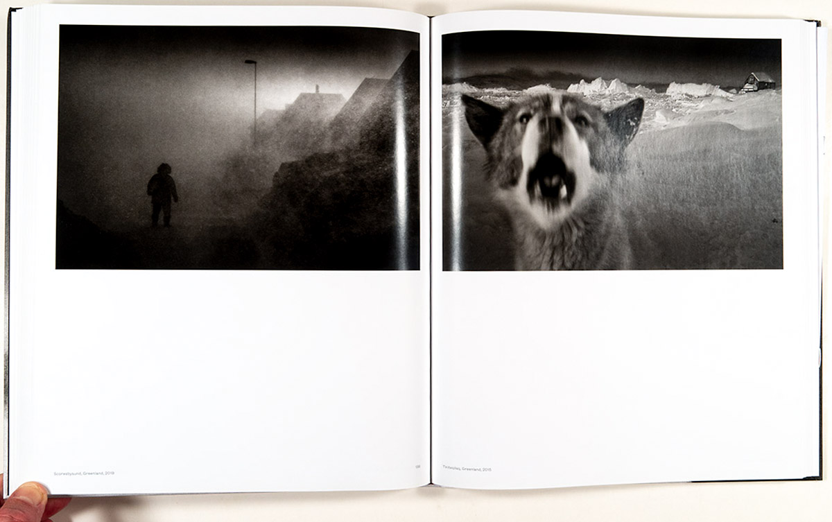 The book’s final section, “Black Landscape,” features more recent images, from 2021. Again, Axelsson mentions “visitors from another planet.” But the new, previously unseen landscapes he is remarking on are actually a warning: “A new landscape is created when glaciers recede… If these white giants, which have reflected the sun’s light and maintained a tolerable temperature on Earth disappear, the planet will grow warmer as the reflections of the sun’s rays diminish and more dark surfaces are exposed.” What Axelsson gives us in Where the World is Melting is not simply a retrospective overview of his distinguished career as a documentarian of the North, of some of the world’s most formidable landscapes, but he is giving us an epic “myth,” a story of ice and loss and the disappearance of traditional ways of being and existing in the world.