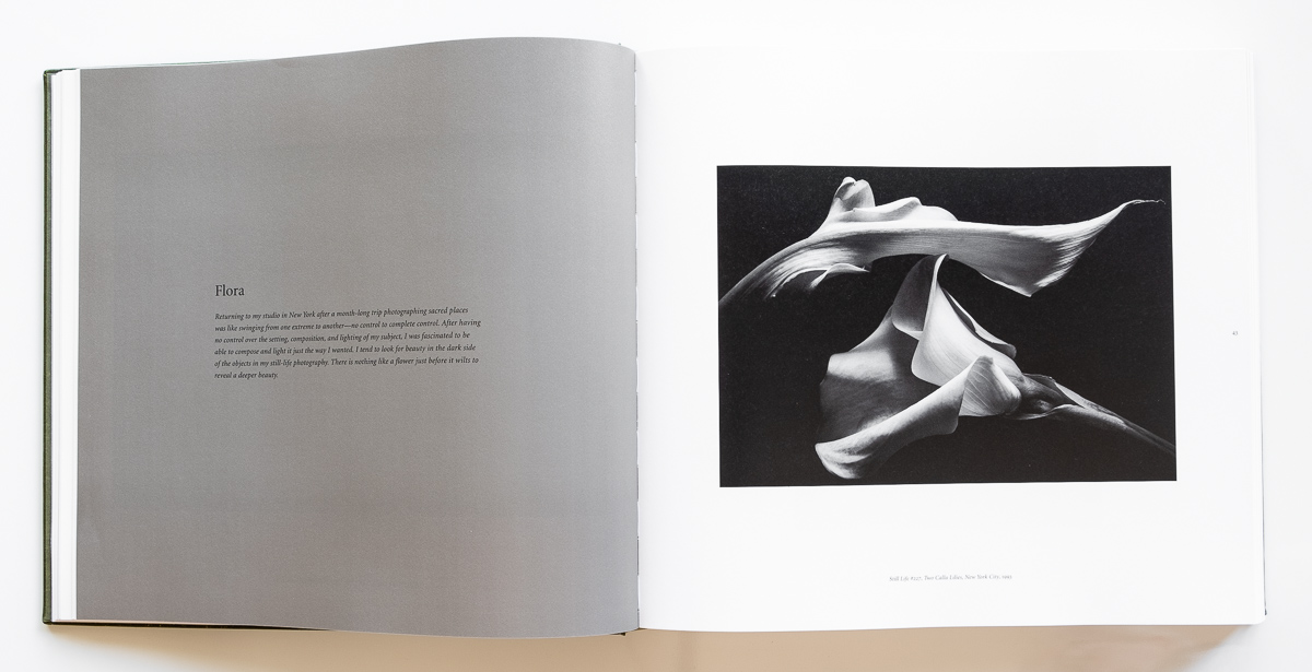 The through-line in all these works is a sense of the spiritual. “His reverence for light and its visual effect on all the substances of our world achieve a spiritual quality similar to the ancient stones, and flowers, and human forms he photographs,” writes gallerist Howard Greenberg in the book’s foreword.