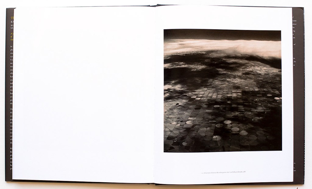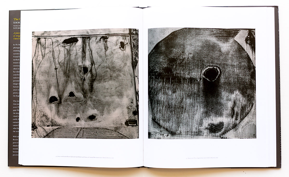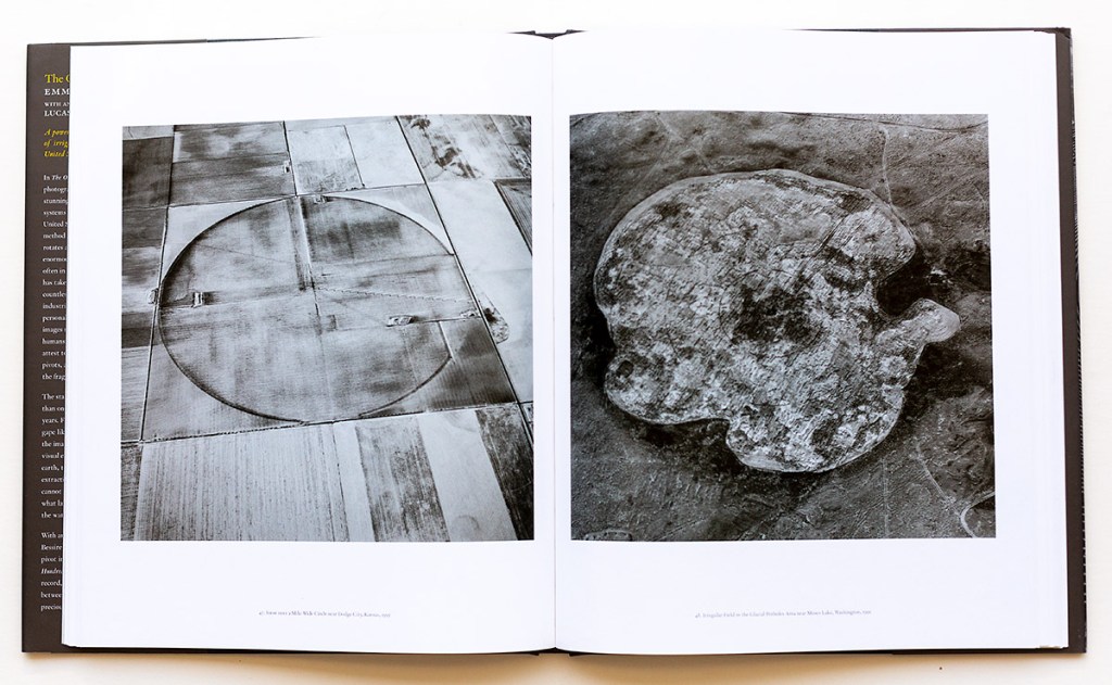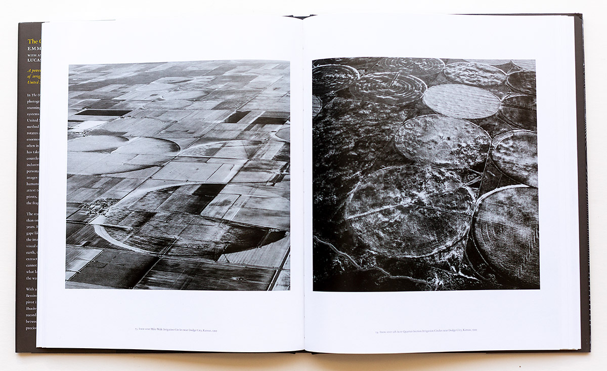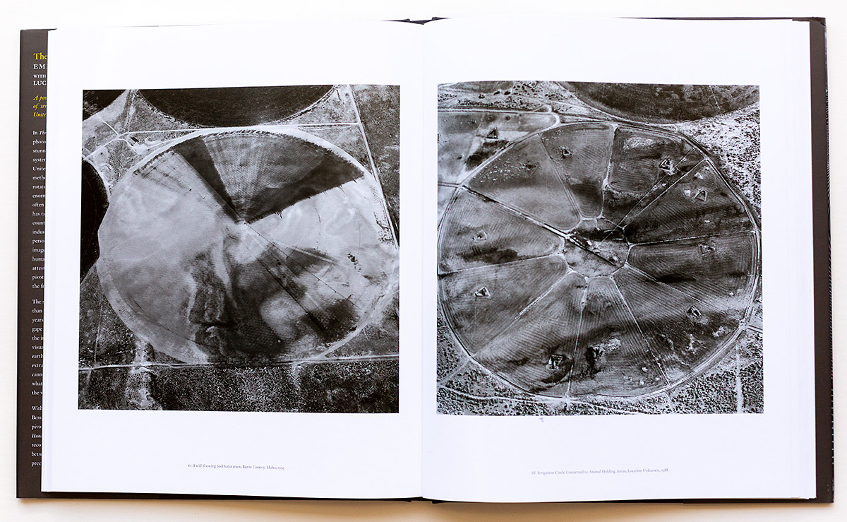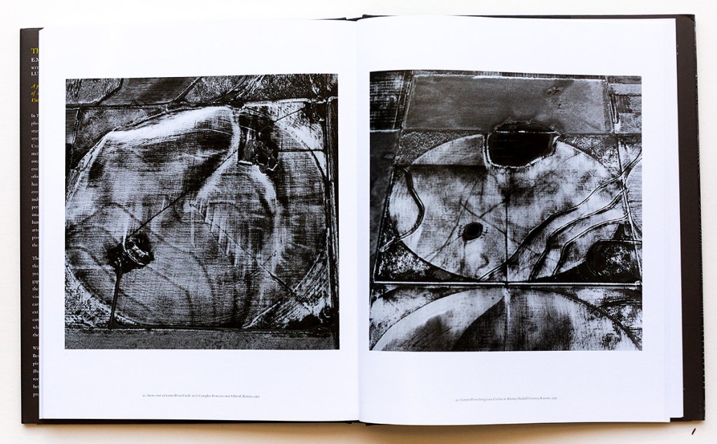 This is an eight-year landscape project that Gowin completed in the 1980’s, so why publish this body of work now? I believe that Lucas Bessire’s Afterword provides ample clues; perhaps it is not a matter of what is seen as much what is not seen. The crop-circles are part and parcel to the agribusiness of center-pivot irrigation farming’s repeated use of chemicals, the depletion of the natural elements in the soil, the continuing detrimental effects on the ancient Ogallala Aquifer that the deep wells tap into as its water source. The underlying trade-off of big agribusiness and the on-going safety of our ecology in the face of global warming and the damaging exposure to the health of surrounding communities by the various chemicals that are utilized to make a huge profit. Essentially these become symbols that represent a profit for a few at someone else’s expense.