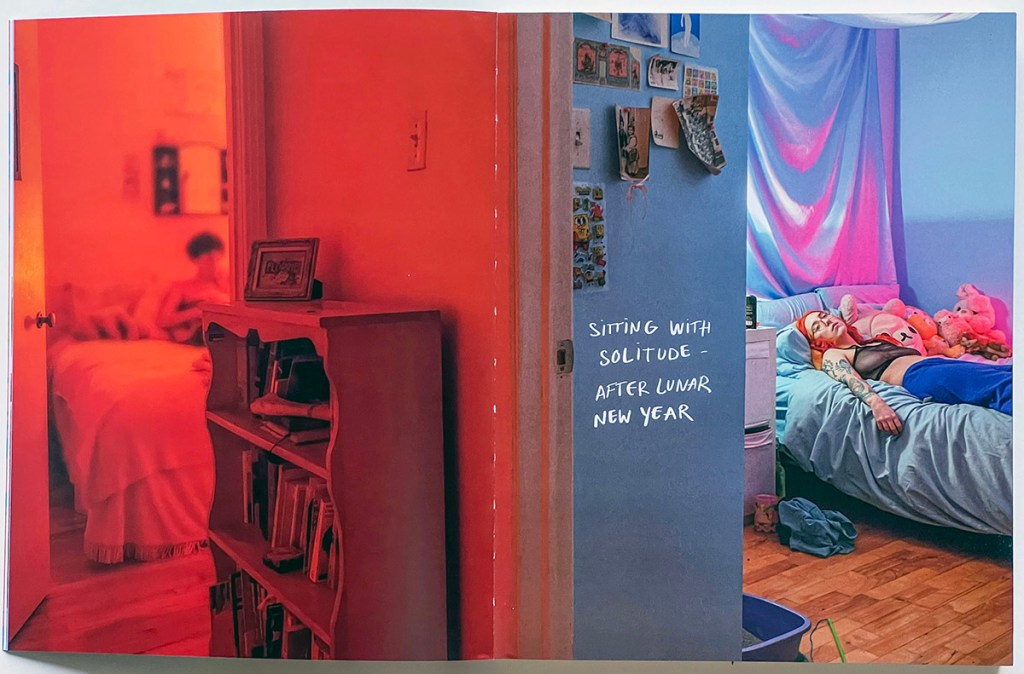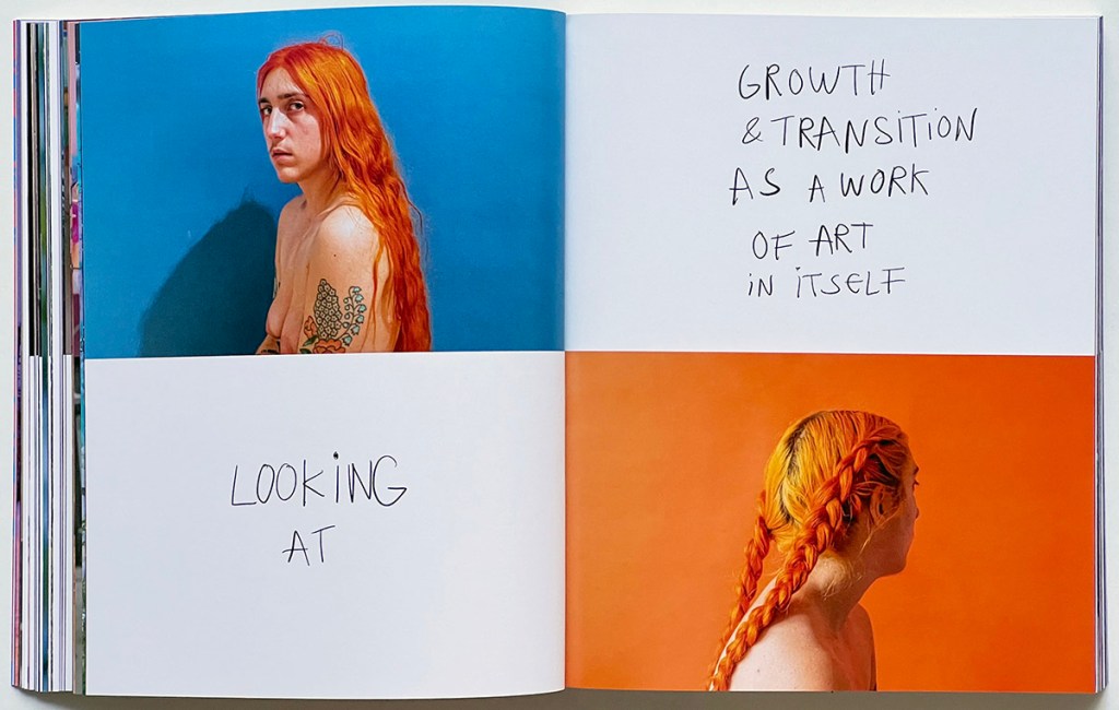 So it is with this refreshingly direct and creatively presented new photobook by Laurence Philomène, also known as Larry, in which we share a special journey over a period of three years. Larry, who identifies as trans, queer, and non-binary, provides many details about various developments and moments that took place during that time. We are privileged find out about a myriad of personal feelings, the process of supplementary testosterone shots, some trips, and we also get to know a group of friends, who function as a very important support group.