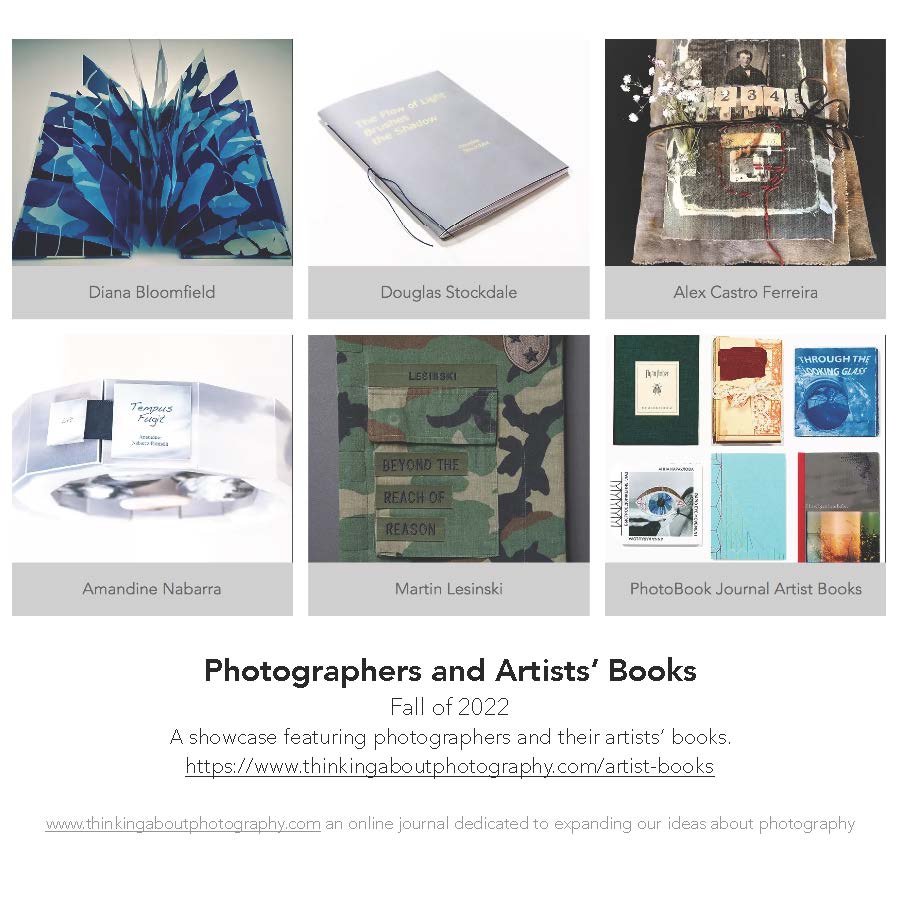 We are also featuring Ann Mitchell’s Thinking About Photography article featuring photographers who create artist book, in which my artist book is featured, as well as the six artist books that we curated. A wonderful opportunity to investigate the interesting world of artist books.