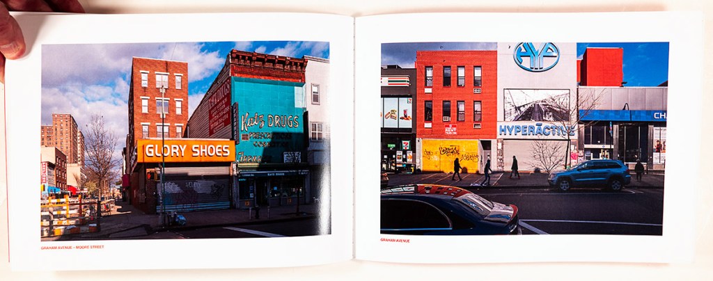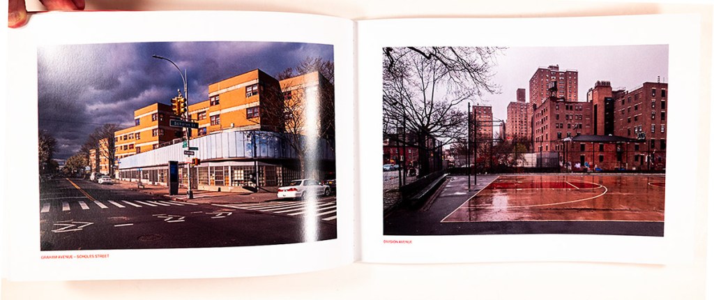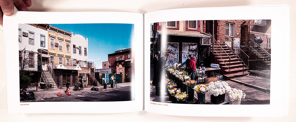 However, I see in one image toward the end of the book, a glimmer of hope, an embrace of beauty even in those locked down days. In a suite of four images from Lee Avenue, taken in what appears to be an orthodox Jewish neighborhood, a photograph captioned “Lee Avenue – Hewes Street” depicts two pairs of men shopping at an outdoor flower vendor. Both pairs seem aware of safety protocols and yet, the attraction toward the beauty of nature remains. I find something hopeful and lovely in that image.