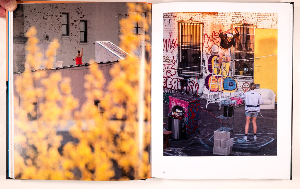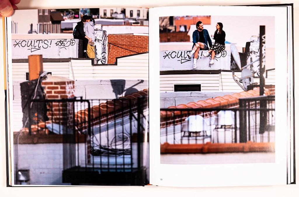 For those who might be anticipating (as I was) a contemporary version of Ruth Orkin’s 1978 photobook The World From My Window, Katz does not present the world from his rooftop, so much as the world of his rooftop, the world that grew and developed in the face of the “tremendous loss” wrought by the pandemic and the distancing from the wider world he and his neighbors (and, obviously, all of us) were part of. Katz’s photographs offer us a document of human hope and resilience in the “roof culture” that emerged in the face of the “isolated desperation” all were thrown into. Katz gives something of a manifesto for his project in this written entry for April 12 (Day 31 of Quarantine):